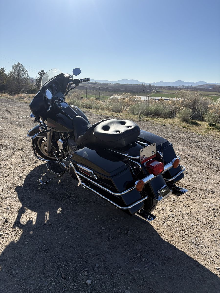 Venmo05 electraglide standard. Bike isn’t perfect and she needs a bit of love. I bought this as a fixer upper I’ve put all new gaskets and seals in the transmission and the primary. It will need a comp sprocket and a rear gear for the belt drive. I’ve put a new belt on it a brand new rear tire. all new fluids new gaskets rear brakes some led lighting and a brand new carburetor. The carburetor still need a bit of fine tuning mainly a bigger pilot jet than what I have for it. It doesn’t have a radio the previous owner took it out and didn’t know where it went the previous owner also put in a used trans with 20k miles supposedly but couldnt provide paperwork. Set all that to the side and the bike rides really well for what it is. Just needs someone to finish fixing it up. 4500 obo clean title in hand. Trades for other Harley’s