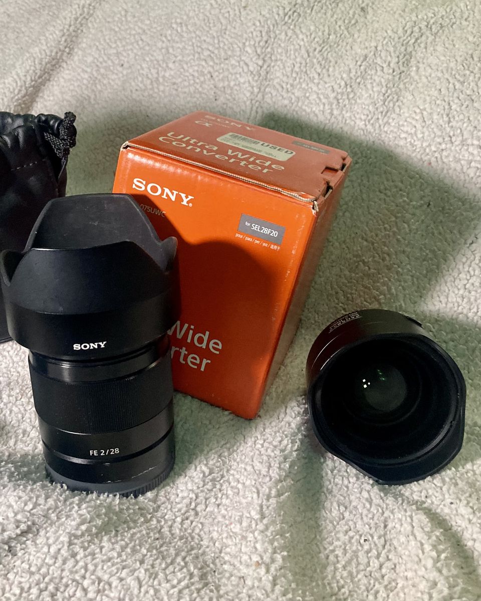 PayPalThis is a adapter for Sony 28mm f2. makes it 20mm. It comes with box. lens cap it lens hood built in. The rear cap. It's in brand new condition. i have the 28mm if you are interested in it I will throw it in for additional $70. The 28mm works fine. The lens mount is beat up a bit. That's why ill sell it for so cheap.