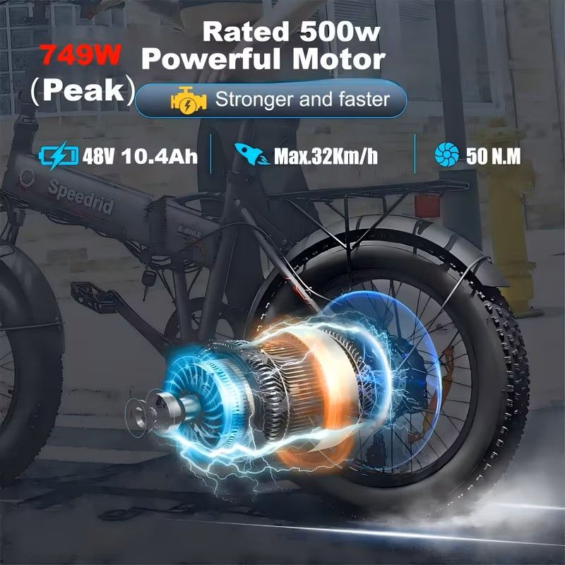 Powerful 500W (749W Max) 20" Fat Tire Folding Electric Bike for Adults | Removable 48V 10.4Ah Battery, Up to 50 Miles Range, Suspension Fork, 7-Speed Gear Commuter Ebike, Blue Dirt Electric Bike.