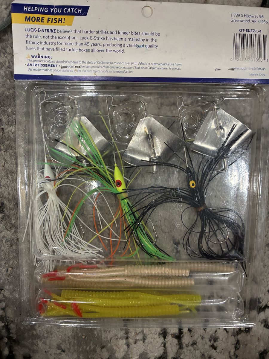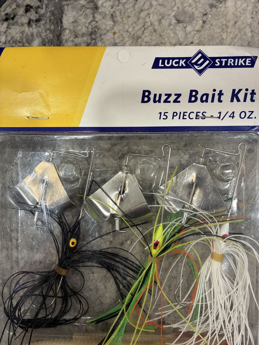 VenmoLUCK-E-STRIKE - 15 PIECE BUZZ BAIT KIT - 1/4 OUNCE BUZZBAITS & TRAILERS. NIB