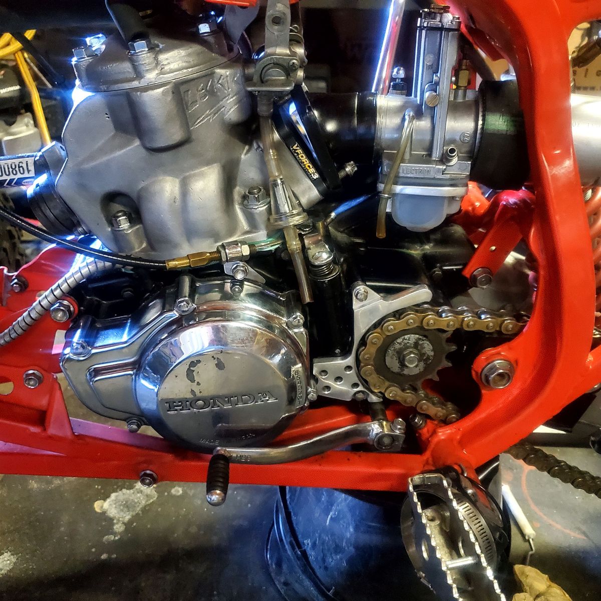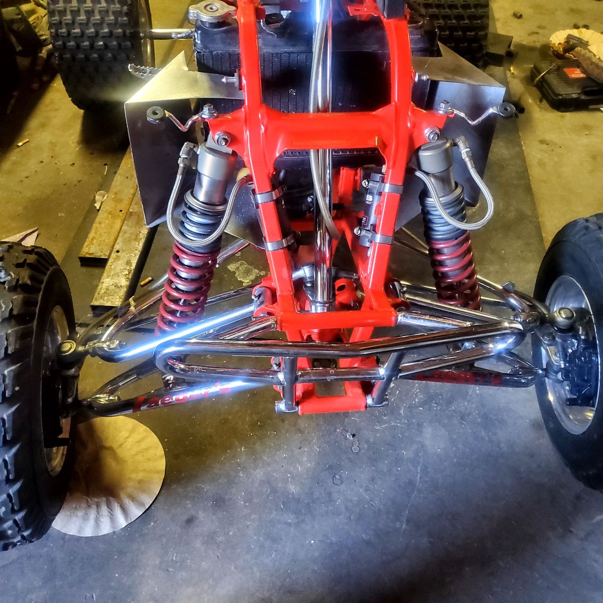 CashApp89 250r big bore stroker kit (330) 44mm lectron carb v3 force custom tuned exhaust pipe heavily ported high compression high octane race fuel only laeger a arms nacs steering shaft 2 stage elka racing shocks durablue axle original plastic bead locks paddles and more