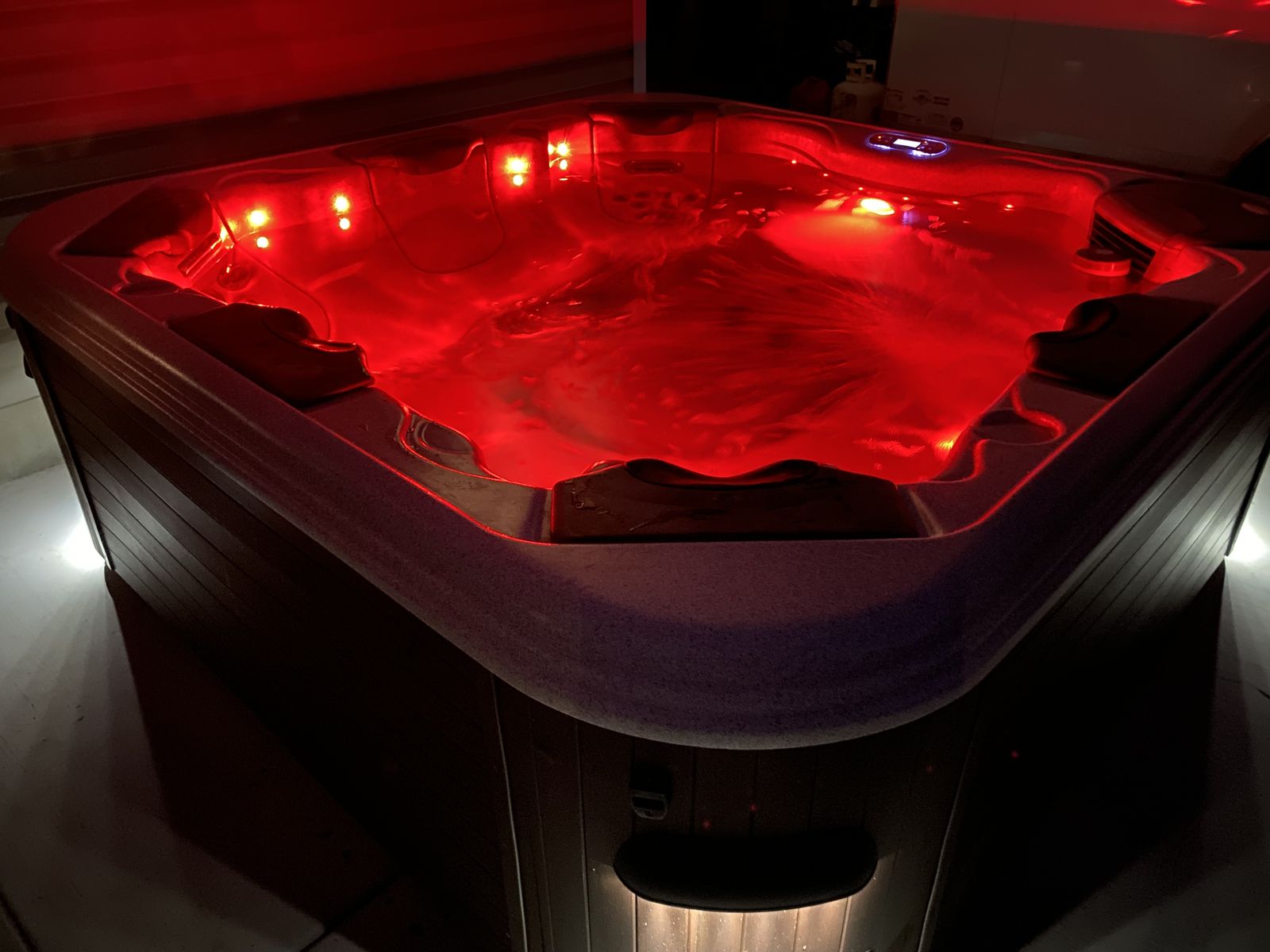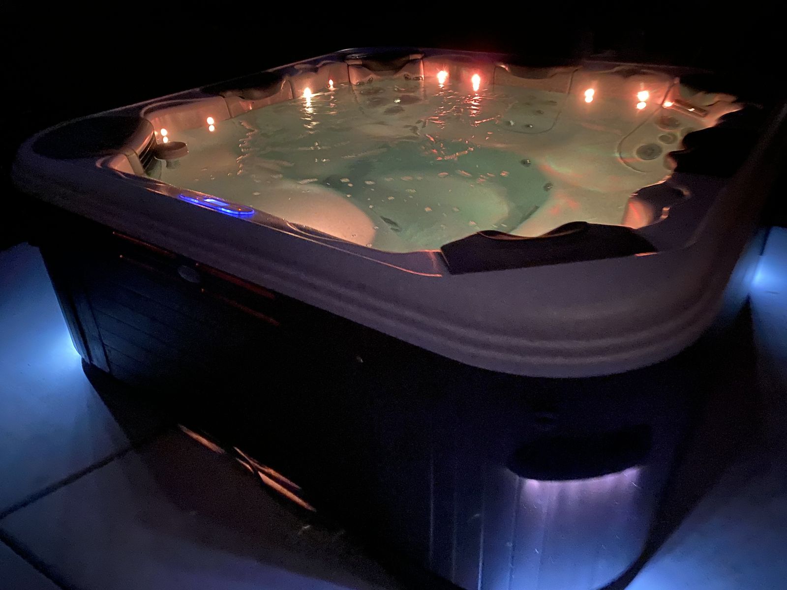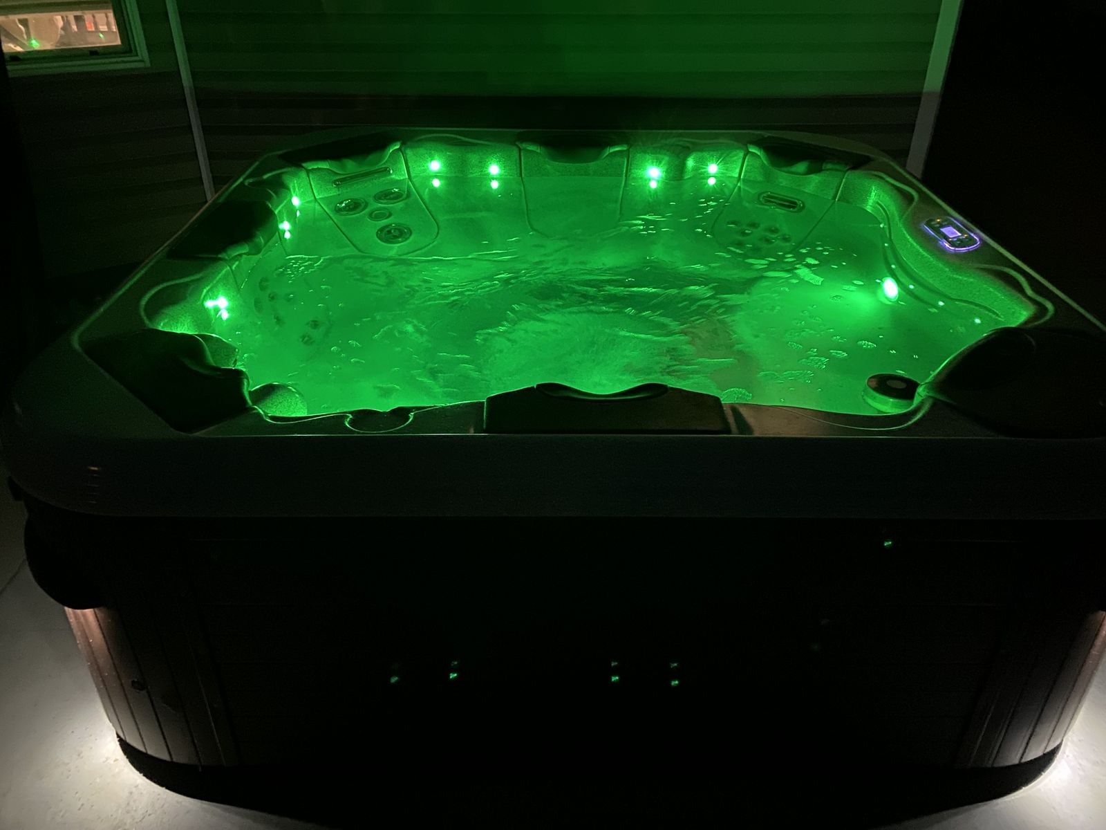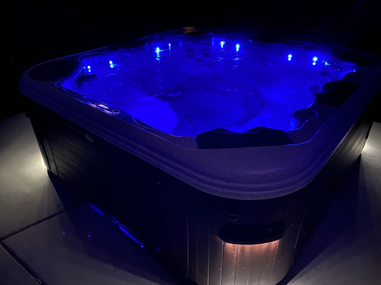 • Interior & Exterior LED lighting for a relaxing nighttime soak