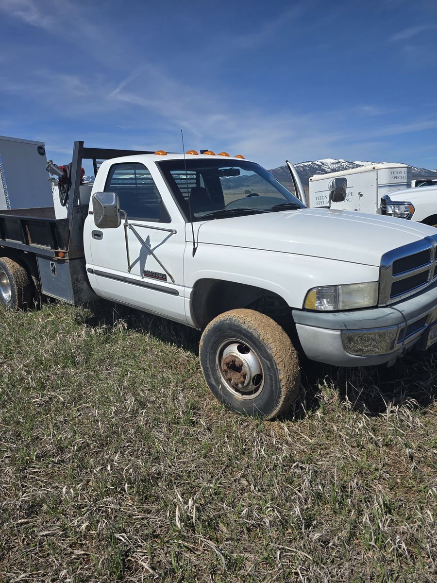 Great running flatbed. 5 SPEED MANUAL! LOW MILES FOR THE YEAR!-140k. 4X4 DUALLY! Has a large fuel tank with a brand new pump. Truck runs and tows strong. Practically new tires. Call for more details.