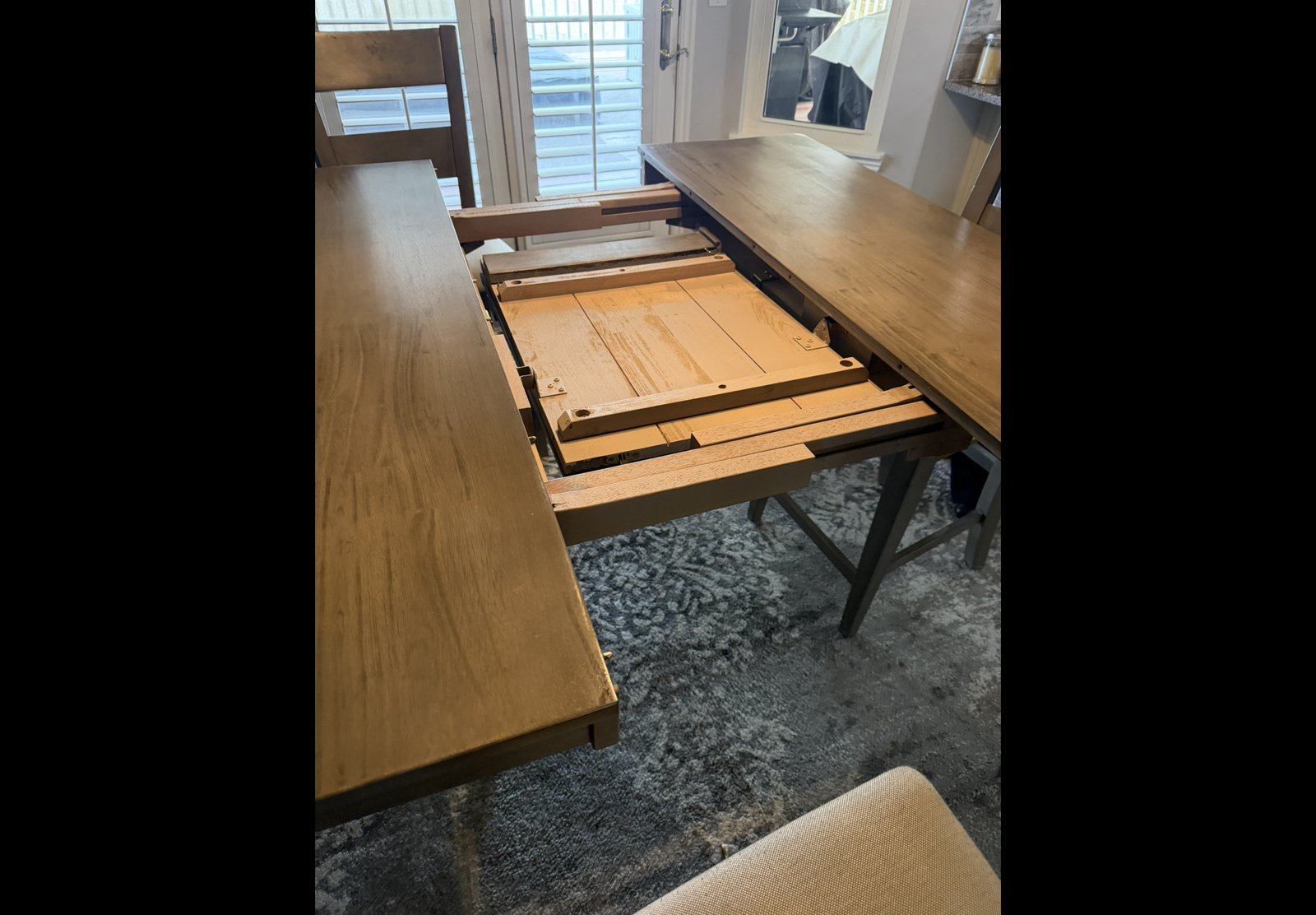 Table 36" tall, has hide a leaf in the table. Like brand new paid $1400 sell for $850