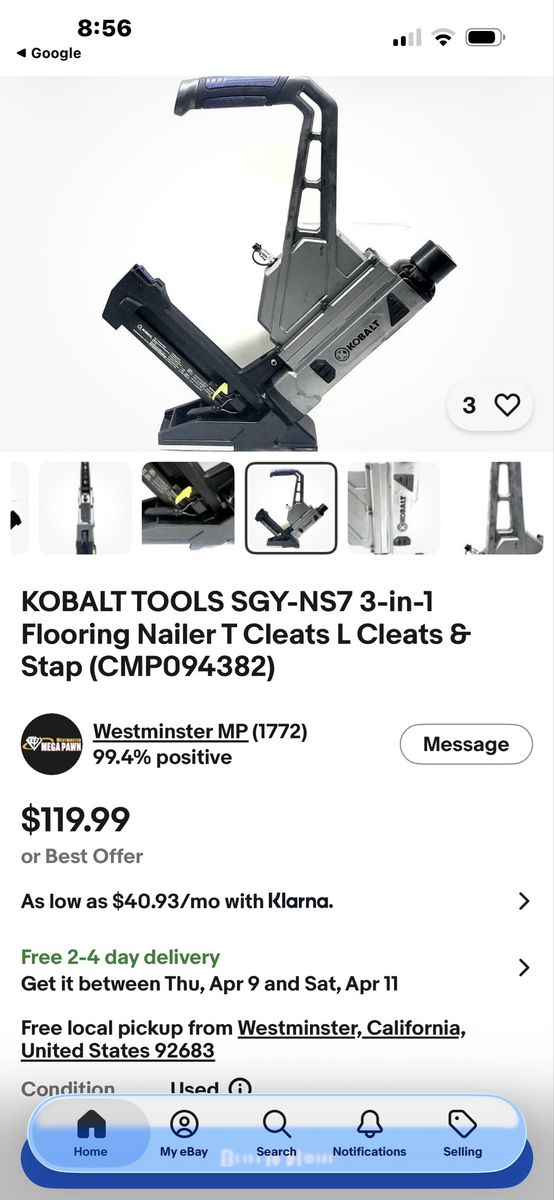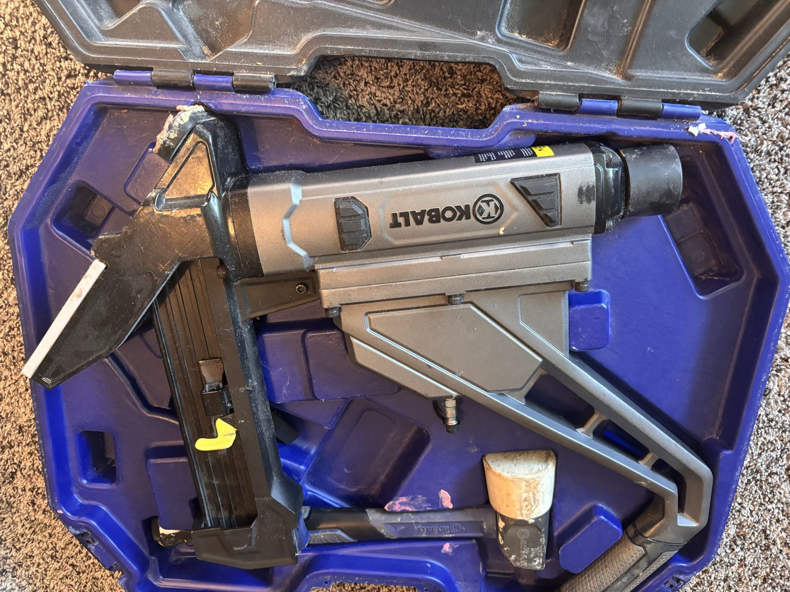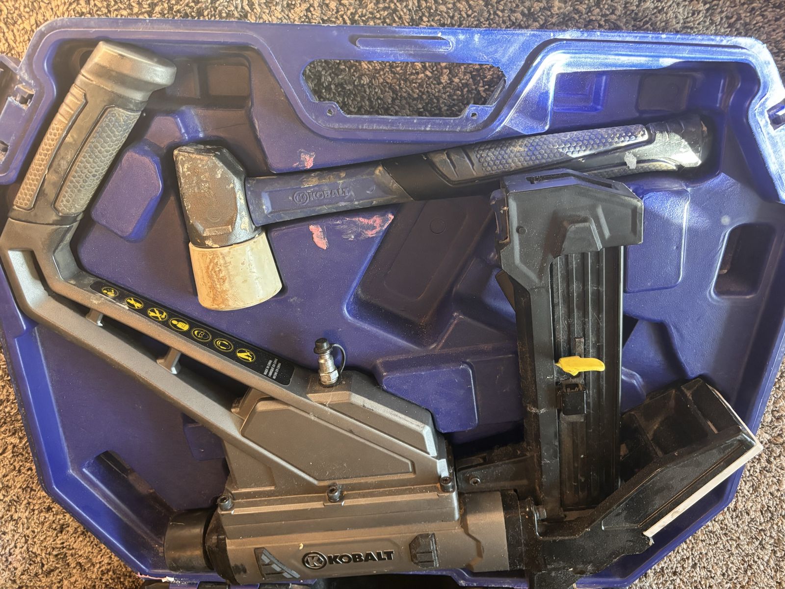 Nice Kobalt flooring nailer in case with mallet! Good used condition! Great for anyone doing their own hardwood floors! This exact model is currently at Lowe’s for 119.99 plus tax as shown in photos Don’t pay retail prices, call Dustin instead at 801-205-3404. I need it gone!