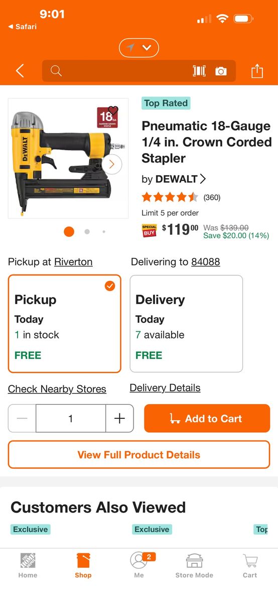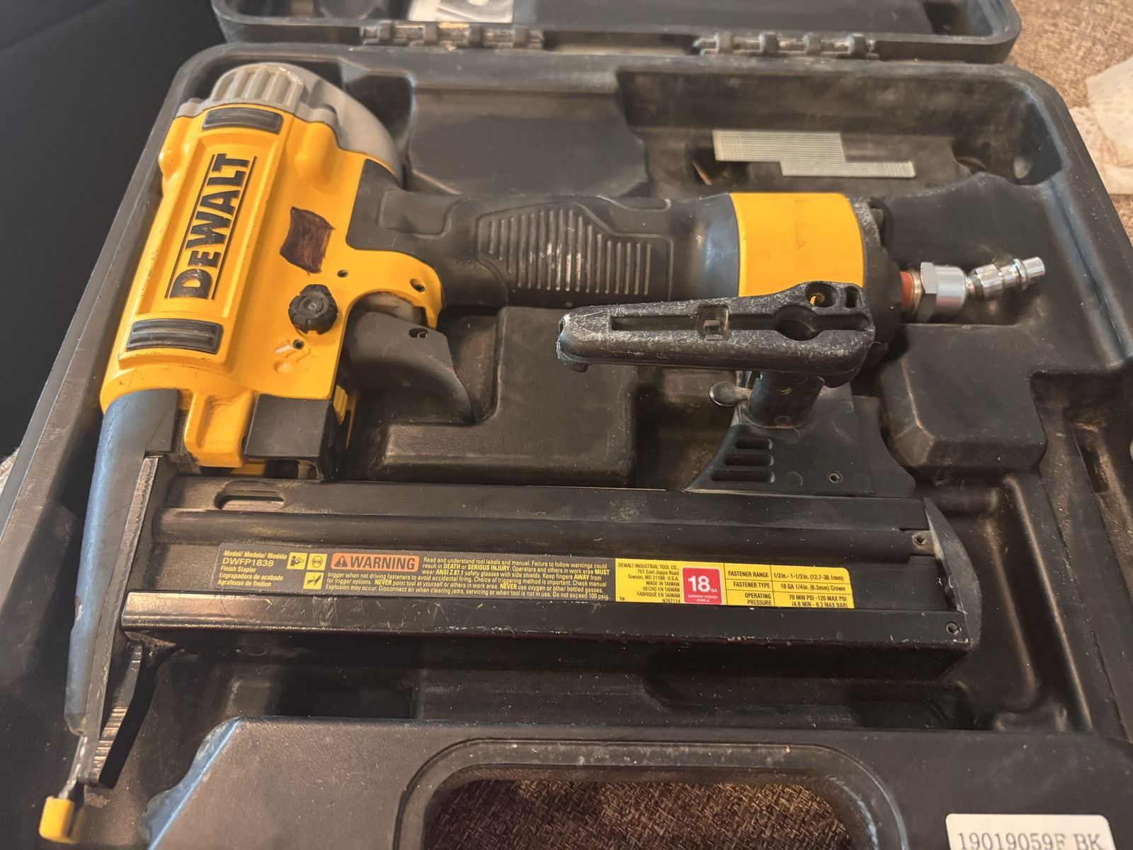 Nice 18 gauge pneumatic crown stapler in case! Great used condition! This exact model is currently at the depot for 119.99 plus tax as shown in photos Don’t pay retail prices, call Dustin instead at 801-205-3404. I need it gone!