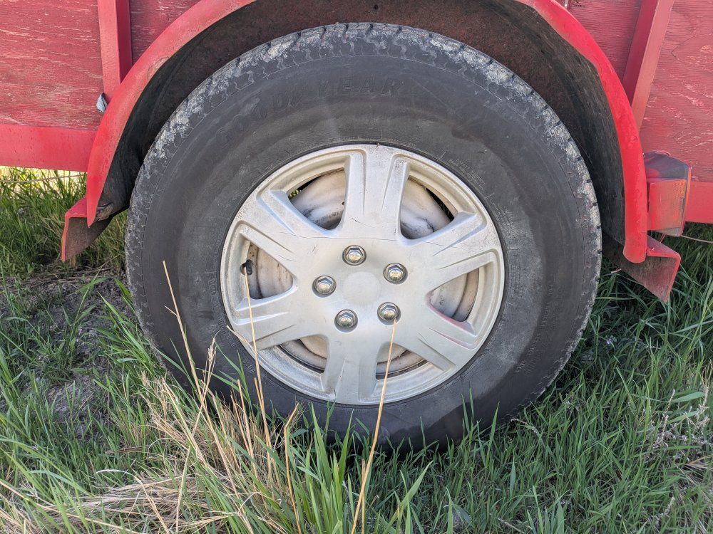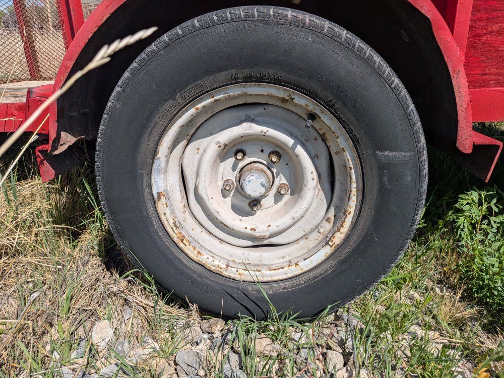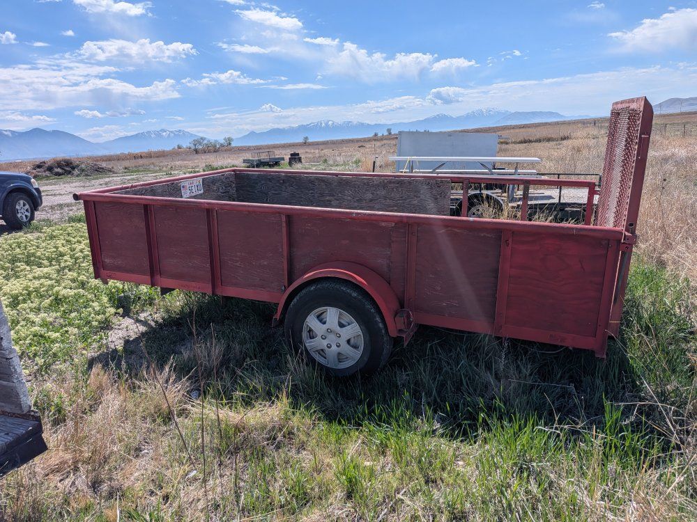 VenmoBig Tex 1999 flatbed utility trailer. 12 1/2 ft x 7 ft. wide box. The axle is 8 ft wide. The overall length is 15 and 1/2 ft.