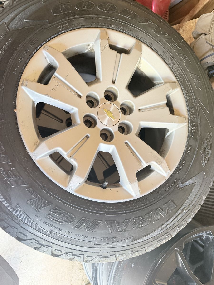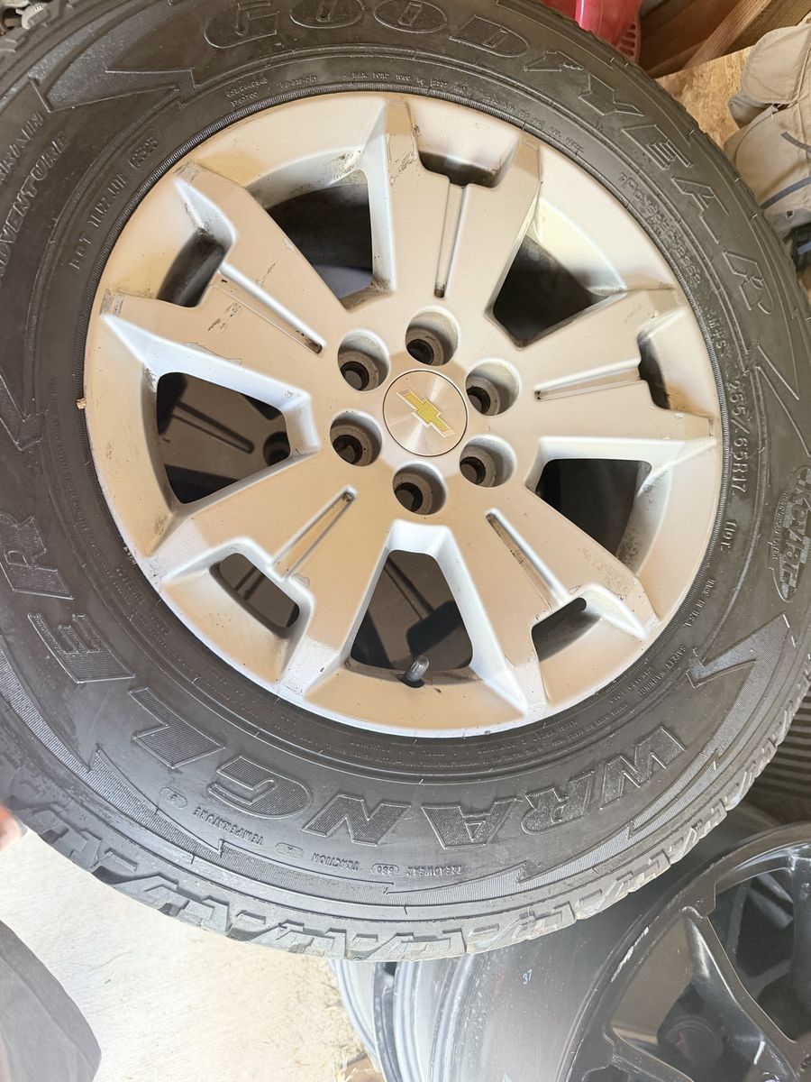 Chevy Colorado or GMC canyon wheels, and tires. Wrangler Tires in great condition (80% thread left) 6X120 bolt pattern I sold the truck and I had aftermarket rooms and tires on. It is the only reason I’m selling them. Thanks
