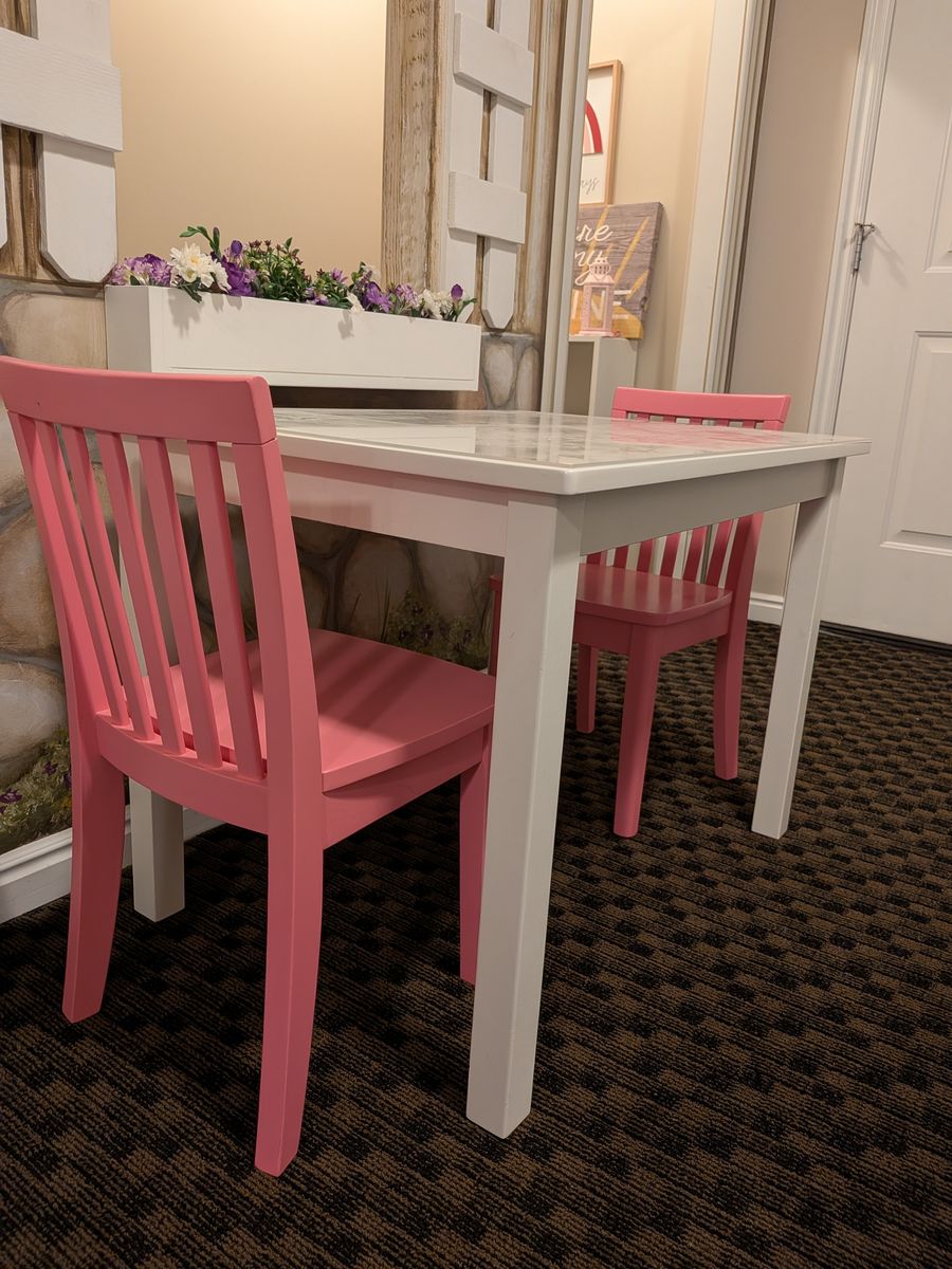 Table: White Chairs: Bubblegum Pink (no longer available through Pottery Barn Kids)
