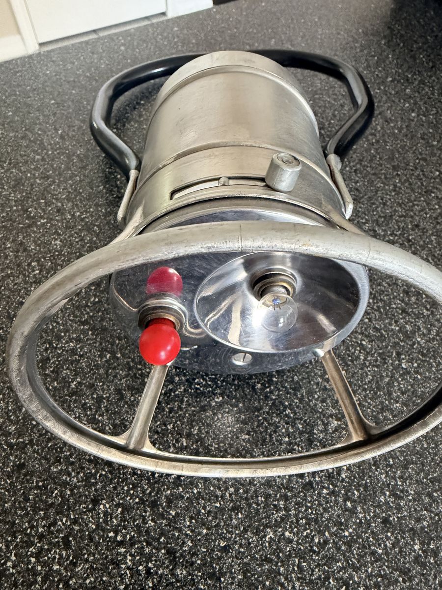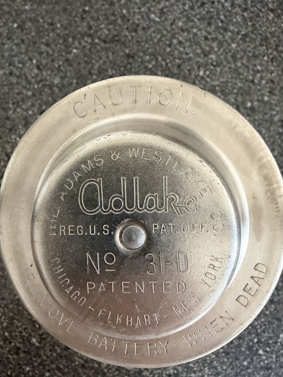 Vintage Adams & Westlake (Adlake) Railroad Lantern No. 31-D, used by train conductors for signaling. Manufactured by Adams & Westlake Co. of Chicago and Elkhart.Has a patented metal body, that features a colored glass globe for signaling, communication and safety.