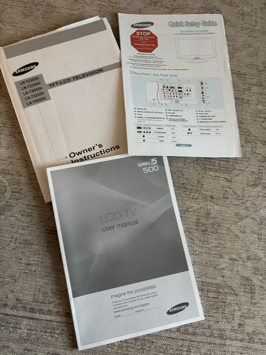 Samsung Series 500 LCD TV with remote and manual.
