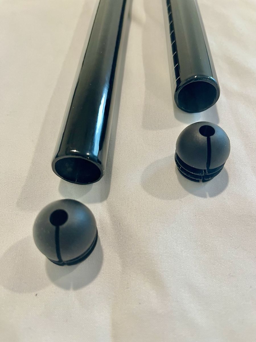 Either end can be cut to preferred length. Mechanical shifter cables or electronic shifter wires can be routed through end caps or ports at bend.