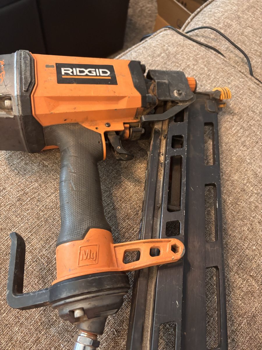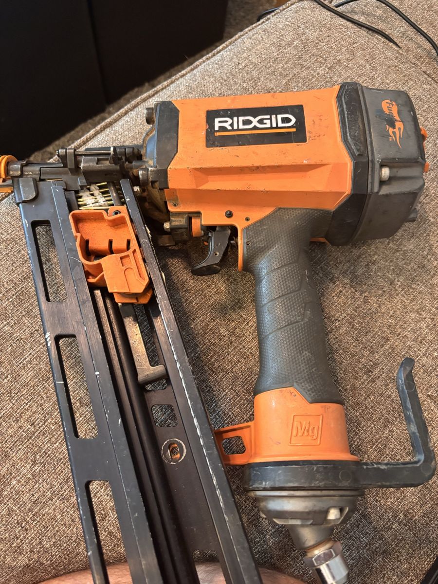 Very nice, good working Ridgid framing nailer in good working condition! ready to work! Perfect for those who do loud music! Comes just as shown in with nailer only(and a few nails) As shown in photos, this exact nailer is selling for around 229.99 at the depot now!! Don’t pay retail prices, call Dustin instead at 801-205-3404. I need it gone!