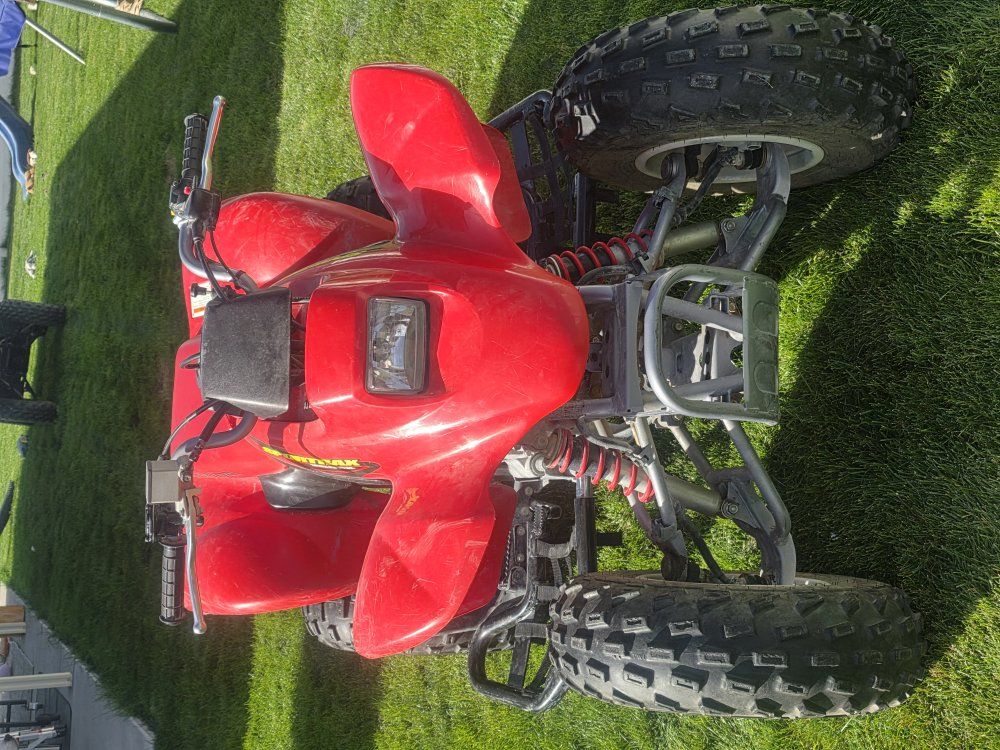 This is a very clean machine and starts right up with no issues. Has always been stored in a garage. I am the original owner and all the plastics and decals are the originals and in excellent condition. Seat is in perfect condition with no rips or tears. I did add the nerf bars. Doesn't use a clutch to shift which makes it perfect for young or new riders.