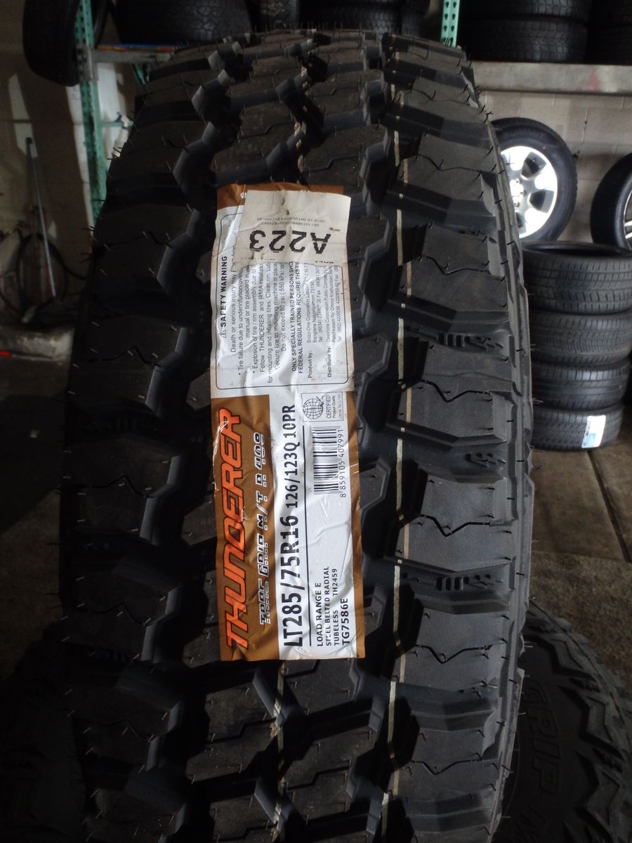 J&J TIRES & WHEELS SET OF BRAND NEW TIRES LT285/75R16 THUNDERER TRAC GRIP M/T LOAD RANGE E FOR ONLY $599 THESE IS A GREAT TIRES FOR ANY WEATHER CONDITIONS, WE WILL INSTALL THEM FOR AN ADDITIONAL $20.00 PER TIRE INSTALLATION INCLUDES MOUNTING,BALANCING,VALVE STEAM AND TIRES DISPOSAL FEE,CALL FOR ANY QUESTIONS AT JOSE OR ROBERTO 801-878-4556 801-410-4460 OR VISIT US,WE'RE OPEN MONDAY TO SATURDAY FROM 9:00 AM TO 6:00 PM..WE HAVE A LOT'S A MORE AN NEW TIRES AND WHEELS CALL US IF YOU ARE LOOKING FOR A DIFFERENT SIZE....