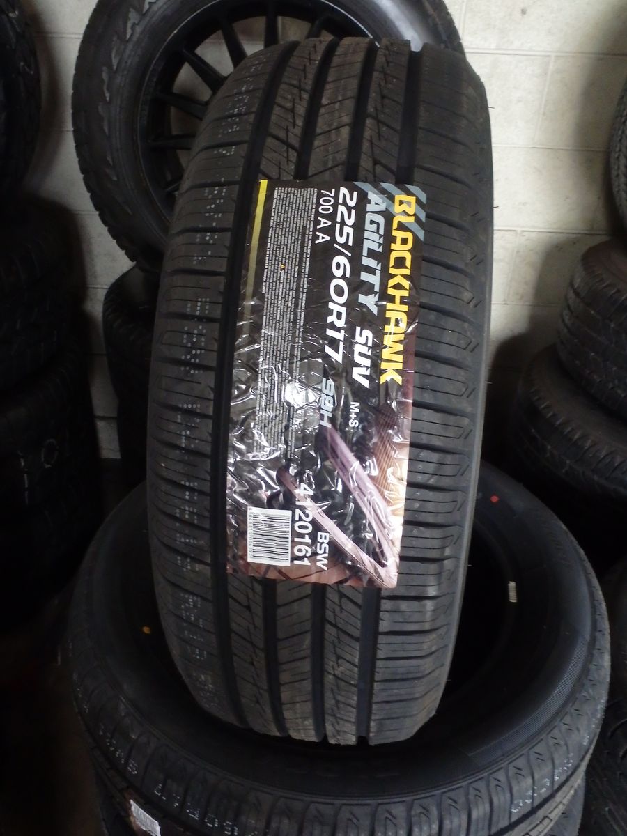 J&J TIRES & WHEELS SET OF BRAND NEW TIRES 225/60R17 BLACKHAWK AGILITY SUV FOR ONLY $320 THESE IS A GREAT TIRES FOR ANY WEATHER CONDITIONS, WE WILL INSTALL THEM FOR AN ADDITIONAL $20.00 PER TIRE INSTALLATION INCLUDES MOUNTING,BALANCING,VALVE STEAM AND TIRES DISPOSAL FEE,CALL FOR ANY QUESTIONS AT JOSE OR ROBERTO 801-878-4556 801-410-4460 OR VISIT US,WE'RE OPEN MONDAY TO SATURDAY FROM 9:00 AM TO 6:00 PM..WE HAVE A LOT'S A MORE AN NEW TIRES AND WHEELS CALL US IF YOU ARE LOOKING FOR A DIFFERENT SIZE....
