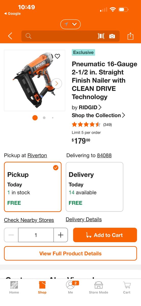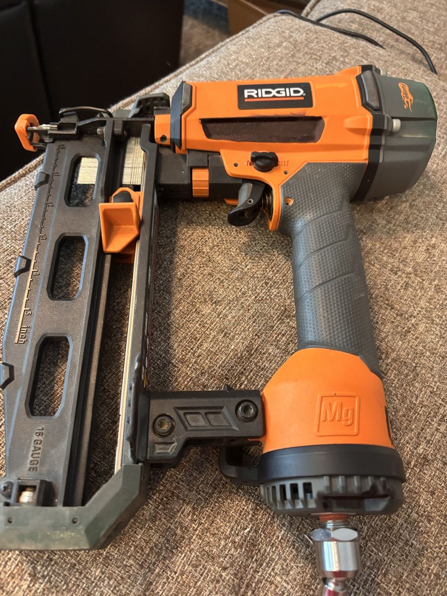 Like new Ridgid 16 gauge finish nailer in great condition ! ready to work ! Comes just as shown. Nothing else included! As shown in photos, this exact item is selling for around 179.99 at the depot as shown in photos now!! Don’t pay retail prices, call Dustin instead at 801-205-3404. I need it gone!