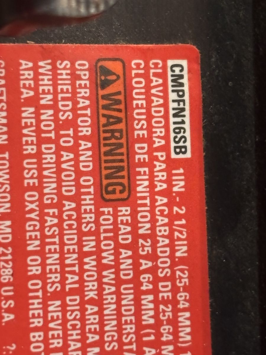 Nice, like new craftsman 2.5 16 gauge straight nailer! in good working condition!! Comes just as shown. Nothing else included! As shown in photos, this exact item is selling for around 119.99 at Lowe’s as shown in photos now!! Don’t pay retail prices, call Dustin instead at 801-205-3404. I need it gone!