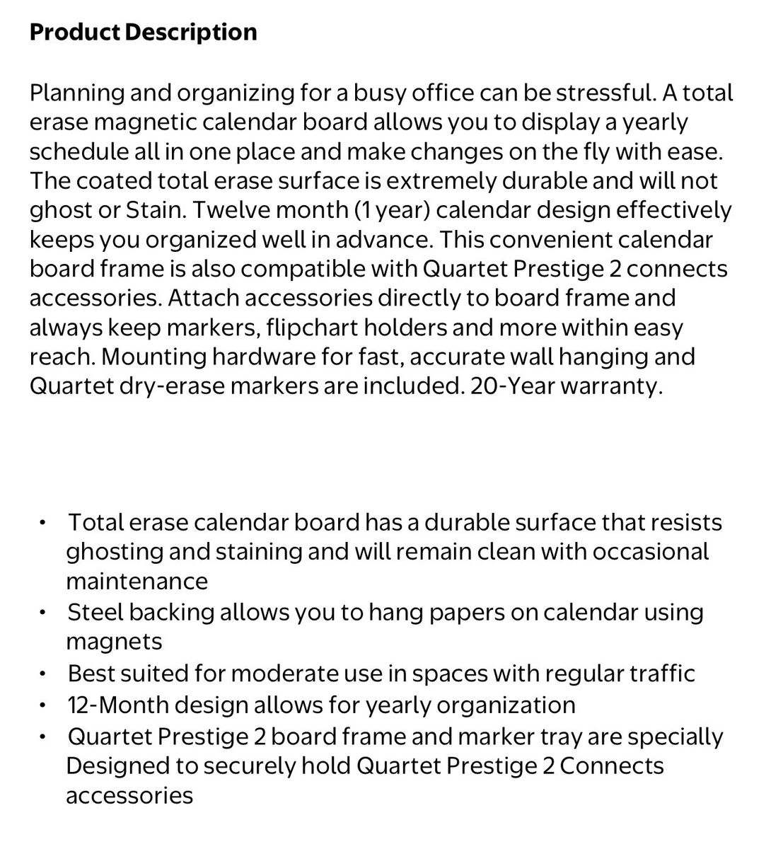 Description- 3’ x 2’ Magnetic dry erase calendar board/planner. See photos for more product information and specifications.