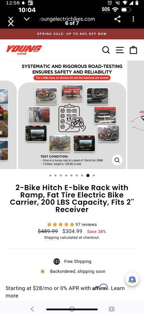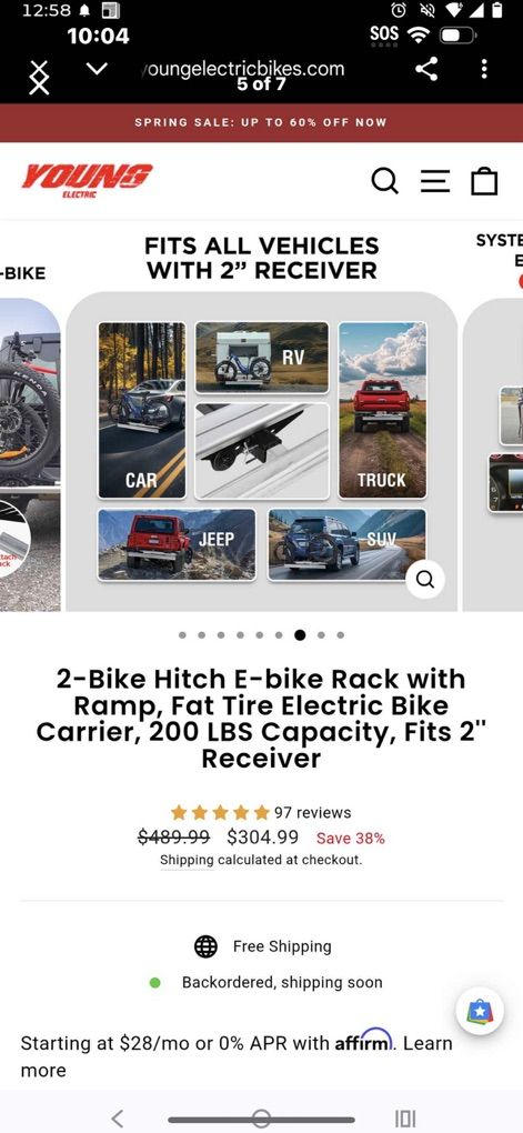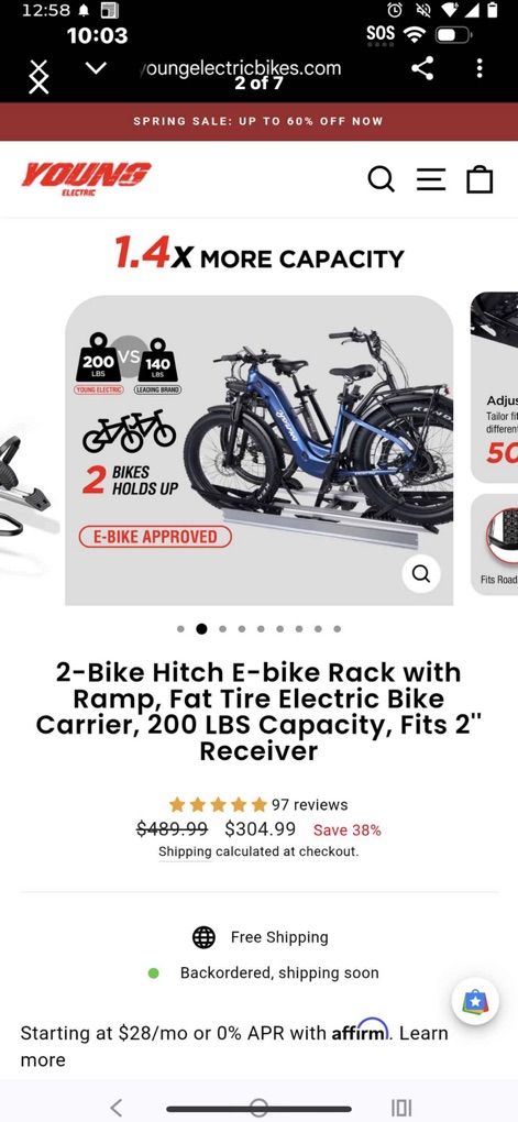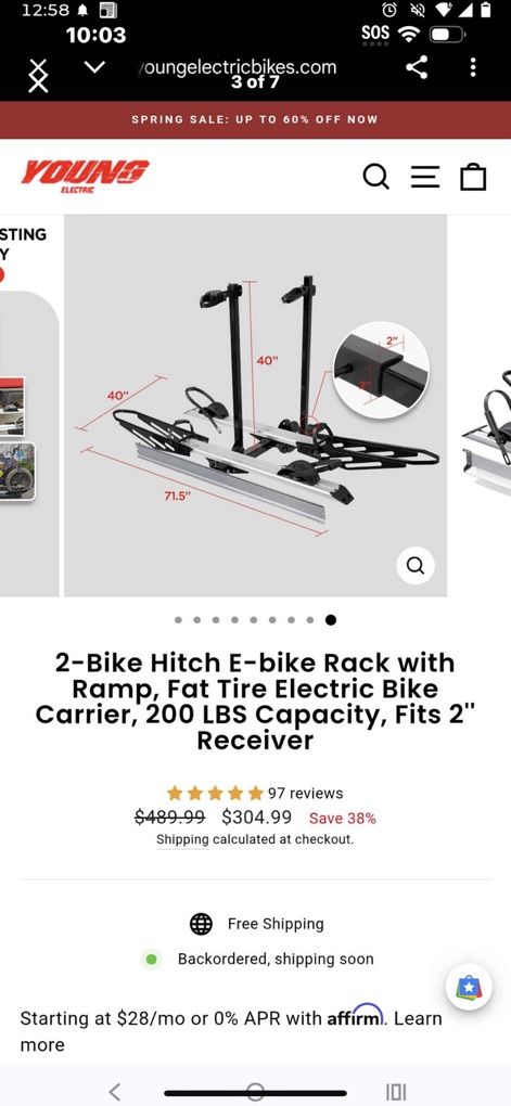 Young 2 electric bike rack New never used $260 cash or venmo