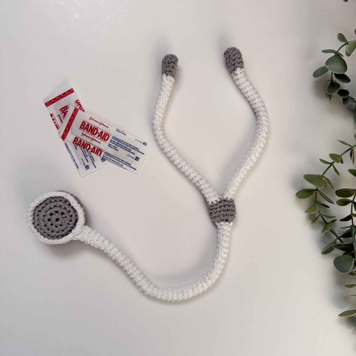 Baby Doctor Crochet Outfit Size: Newborn (13” waist & head circumference) Comes with hat, pants & photo prop, stethoscope
