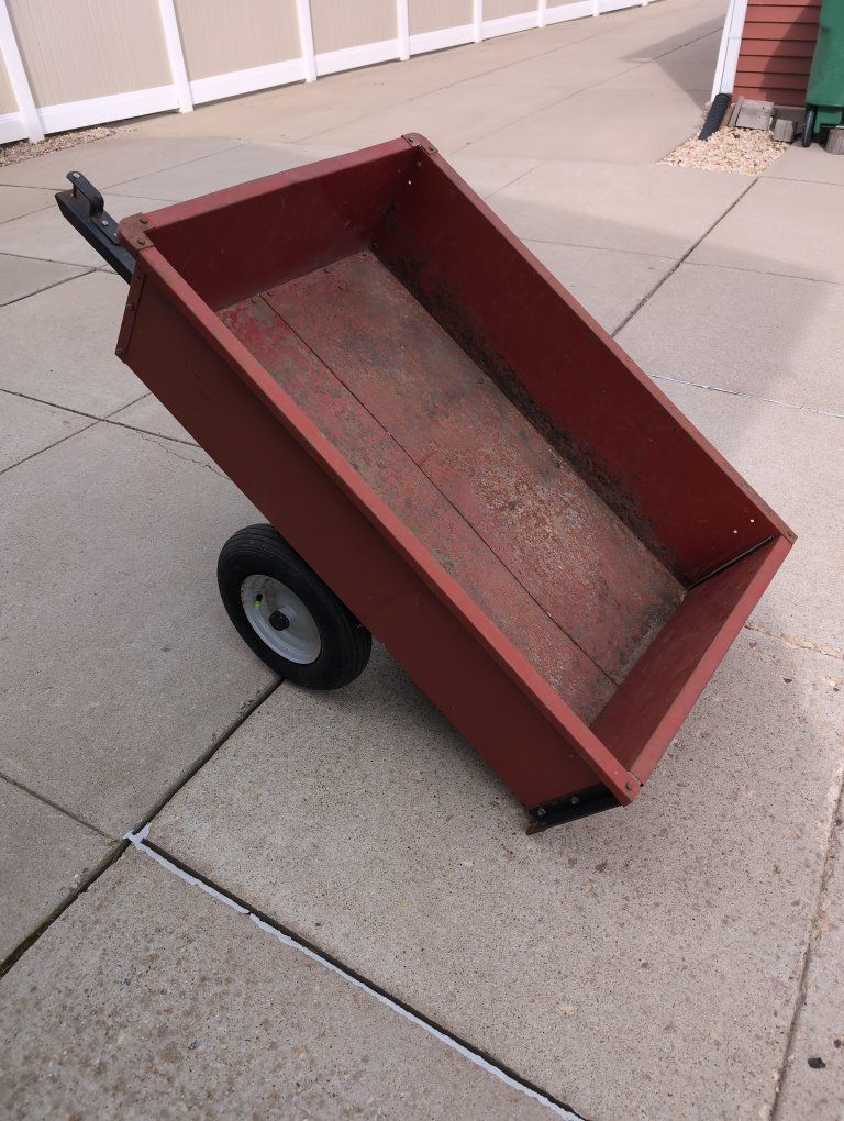 Venmo10 cubic ft, 350 lb capacity dump trailer. tows behind any lawn tractor / riding mower or atv. good condition.