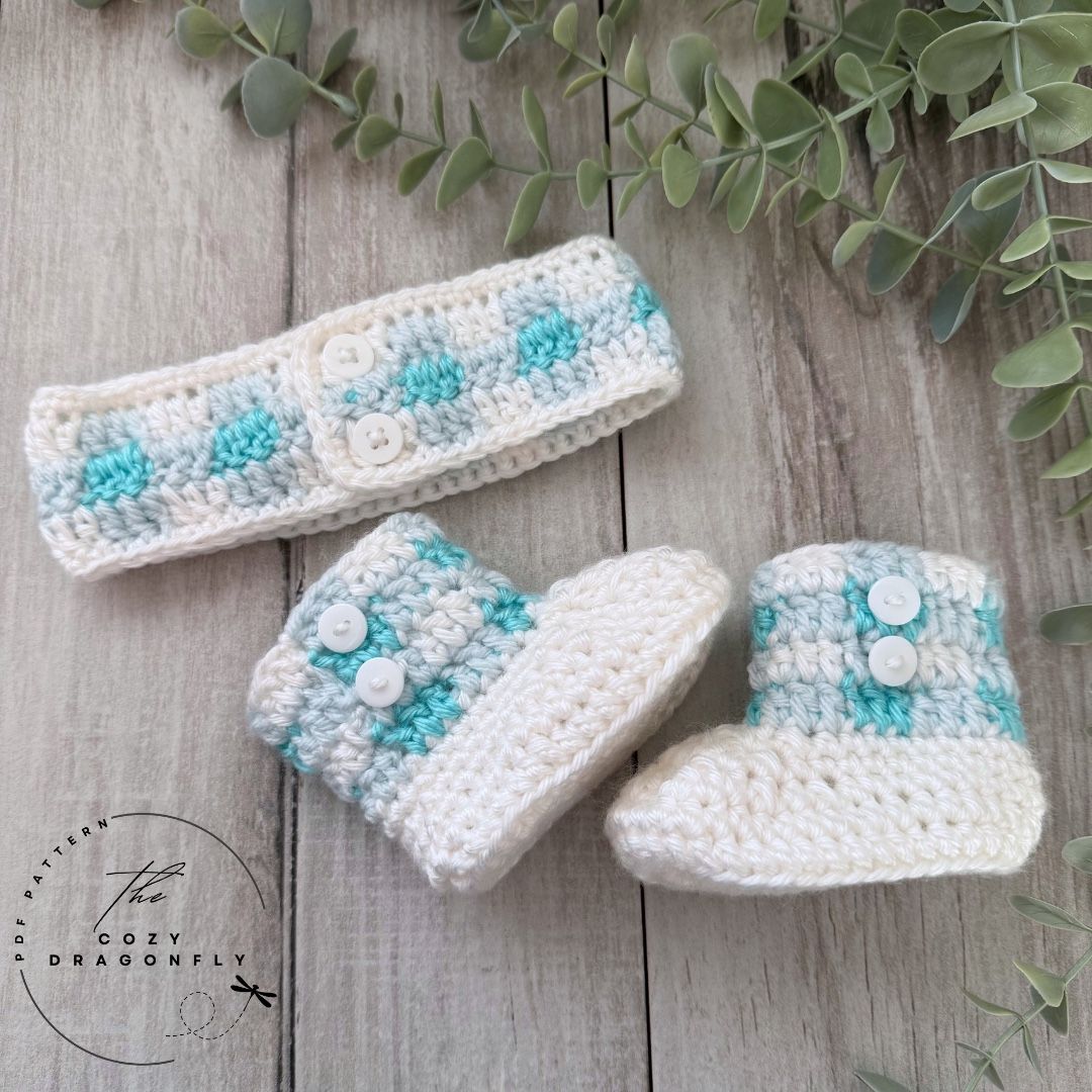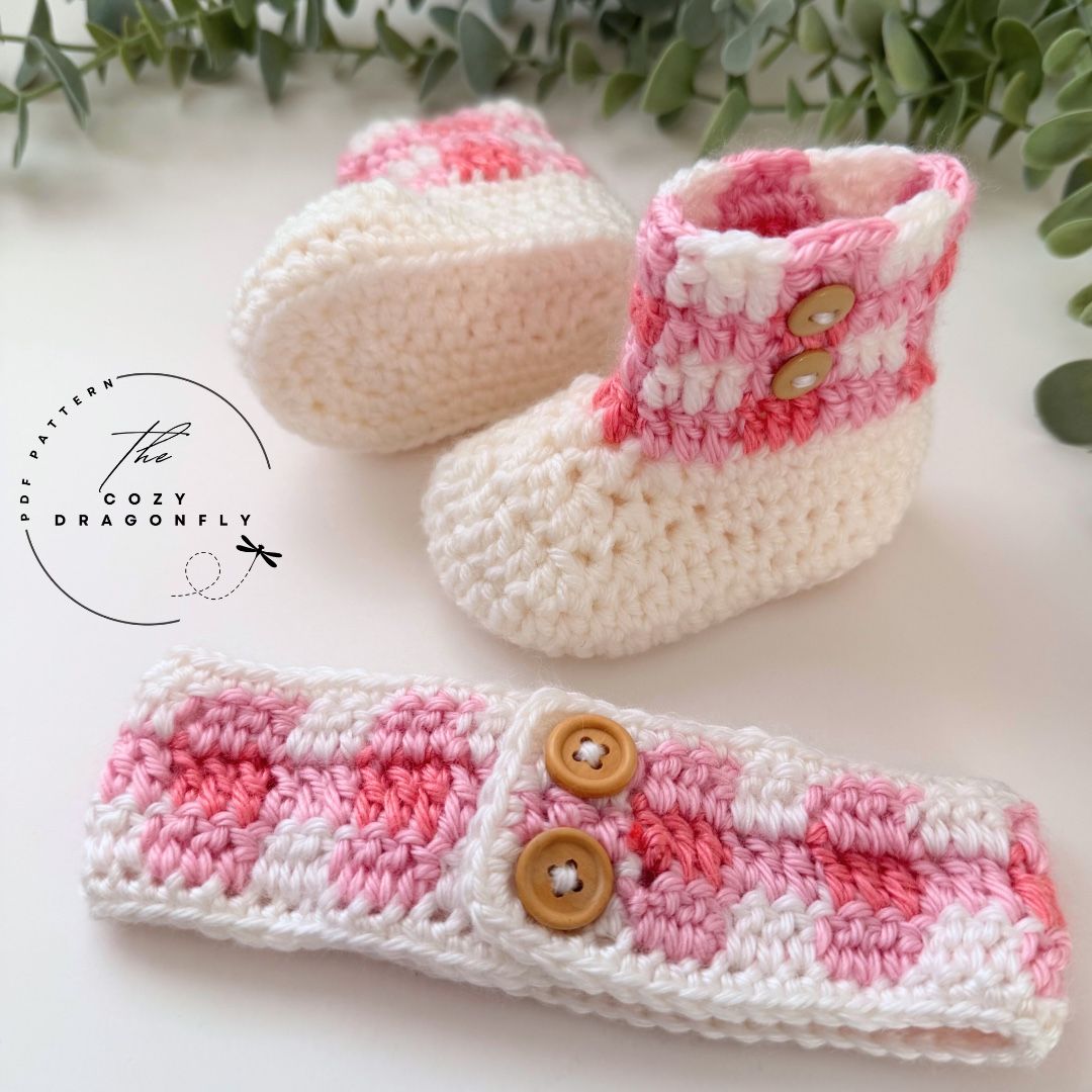 Baby Booties & Headband Size: Newborn (13” head circumference, 3.5” soles Choose either pink or blue plaid set