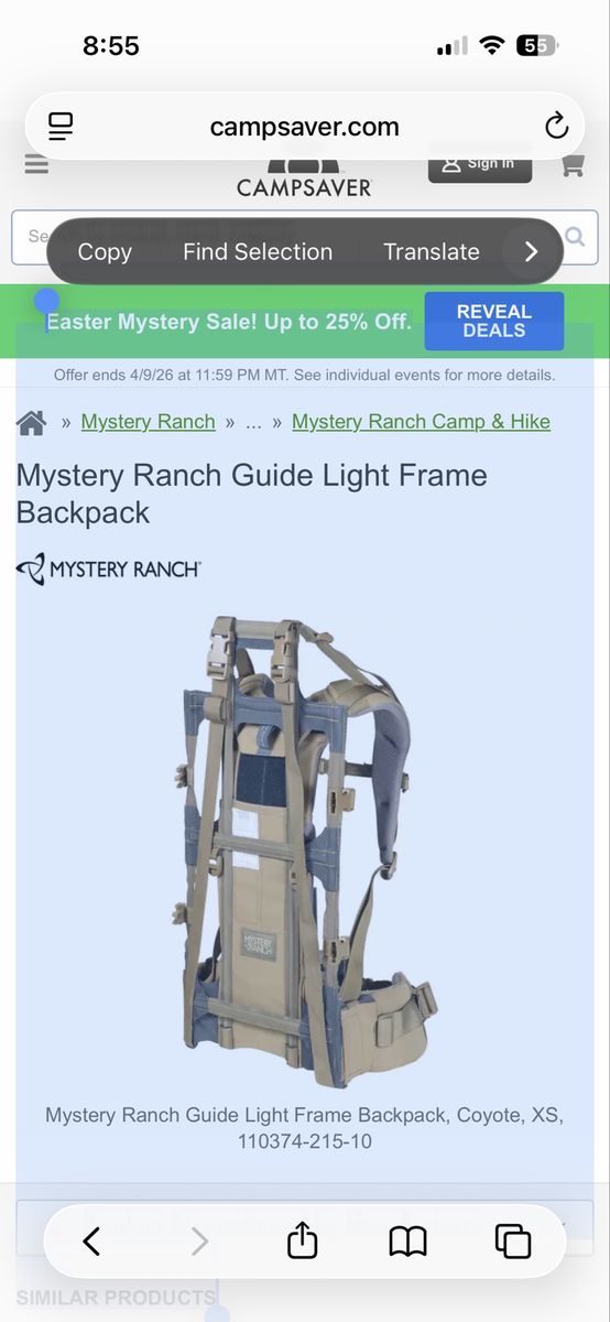 I have 2 lightly used Mystery Ranch Guide Light Frames. The size says 18”-21”. The waist belts are around 38”-40” I think. The tan colored one has a slight rub mark on the back frame rail sleeve, other than that all the straps, belts, and buckles are in perfect condition. Bags for these frames could be purchased separately. $150 each
