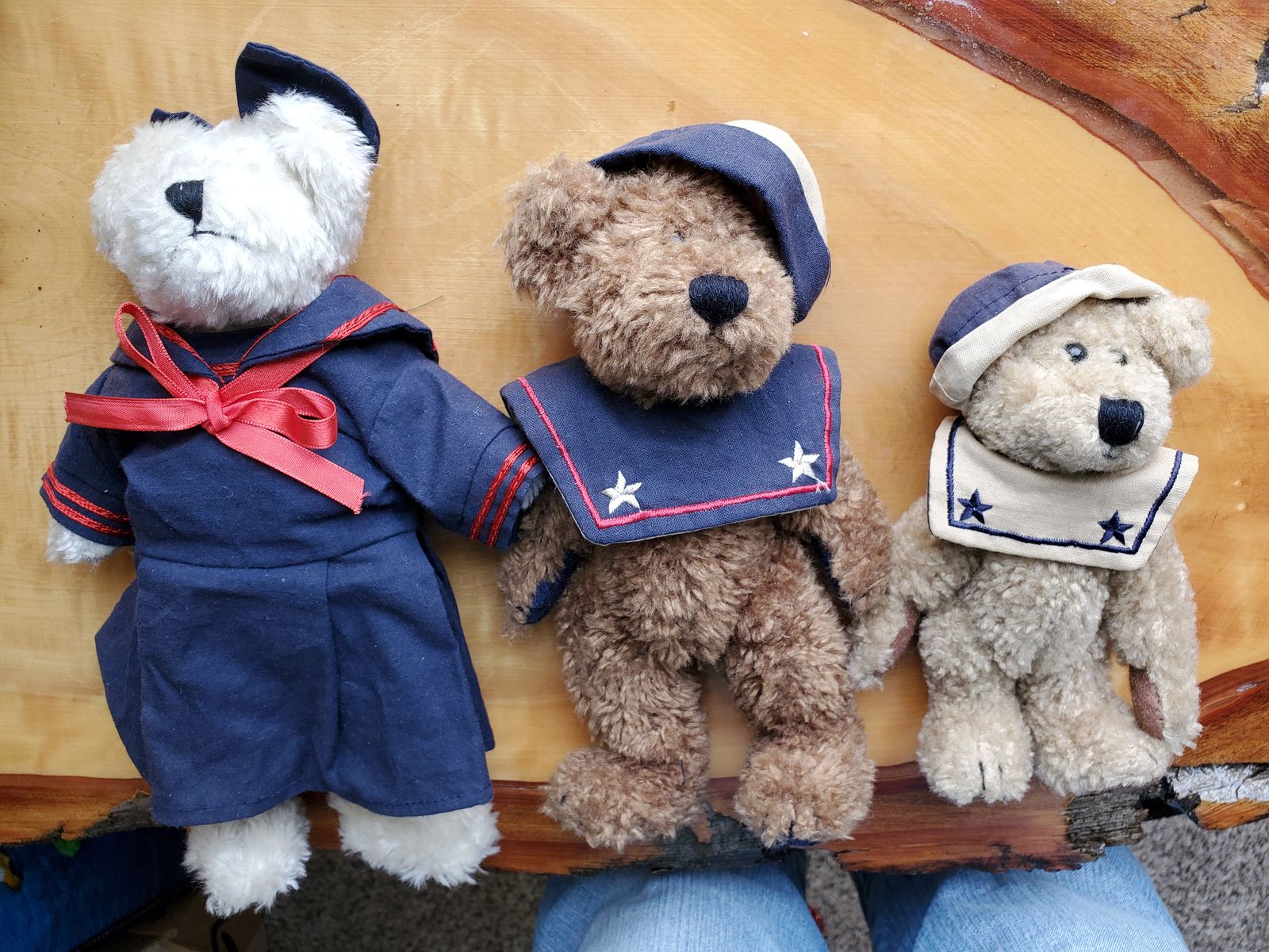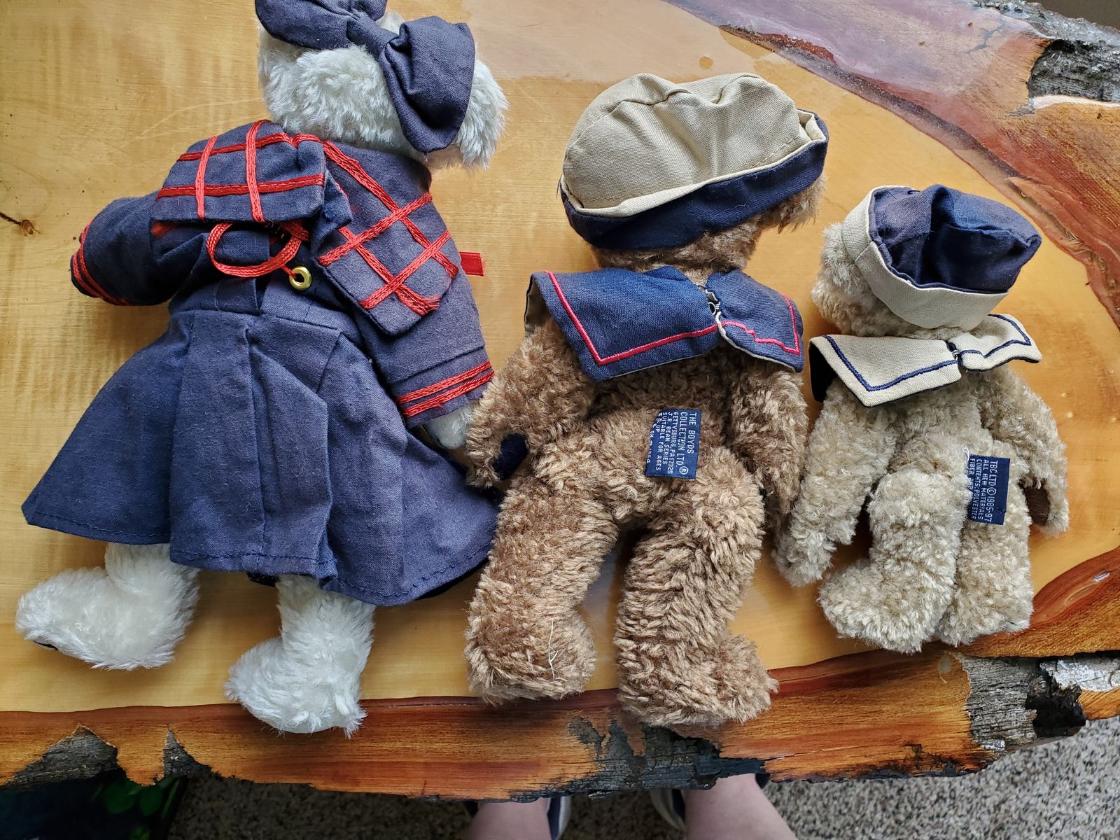 Venmo90s nostalgia! These vintage Boyd's Bears (ca 1998) in their sailor outfits are ready for a day at the lake with three wooden boats. The bears are in good condition although the color has faded a little bit on their clothing. Can be used for decoration or as toys to be played with-- all are clean, cuddly and have moveable joints. Two doll stands included. From a smoke-free home.