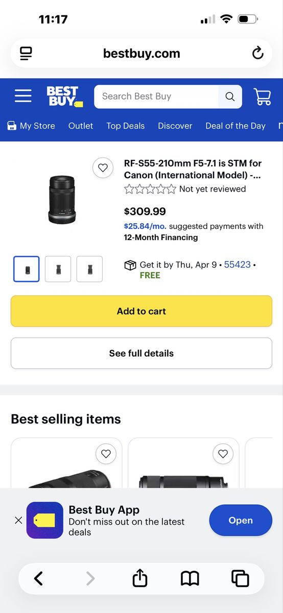 Wow, nice lens in excellent used condition! Always covered at both ends! Comes just as shown. Nothing else included! As shown in photos, this exact item is selling for around 309.99 at Best Buy as shown in photos now!! Don’t pay retail prices, call Dustin instead at 801-205-3404. I need it gone!