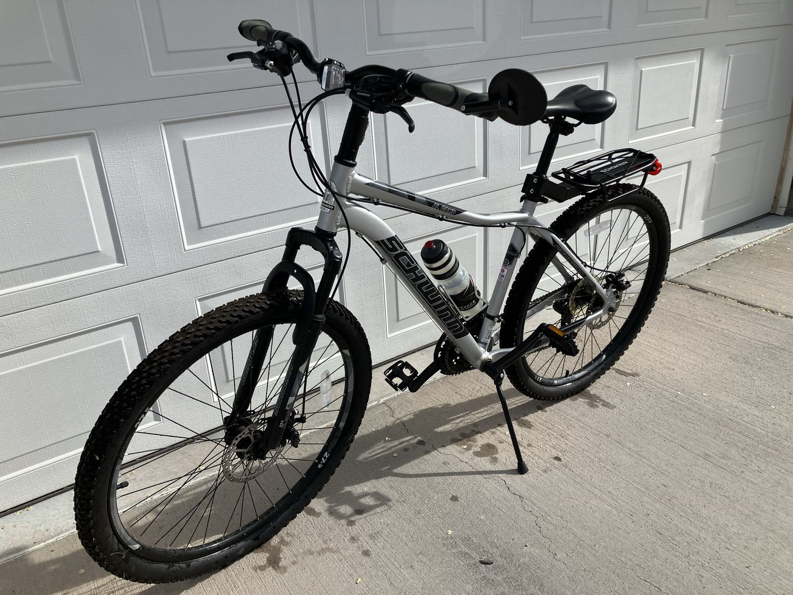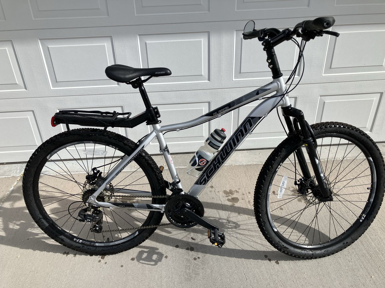 PayPalGet to know the trails better than you ever thought possible with this Schwinn mountain bike. Its aluminum mountain frame offers lightweight durability for long-lasting use, while the suspension fork boasts 100 mm of travel to soak up bumps and improve off-road handling. The 21-speed Shimano drivetrain is perfect for subtly adapting to changes in terrain, while upgraded mechanical disc brakes deliver all-condition stopping power. 2.2-inch-wide knobby mountain tires deliver the grip and traction you need for nimble handling out on the trail. So get out there and have a blast off-road.