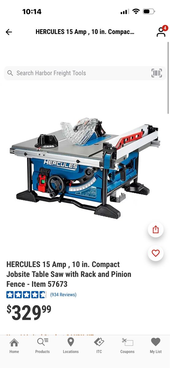 VenmoHercules 15 Amp 10” compact jobsite Table Saw with Rack and Pinion Fence. This saw is in very good condition. If interested or you have questions, text, message or call John at 801-678-5503