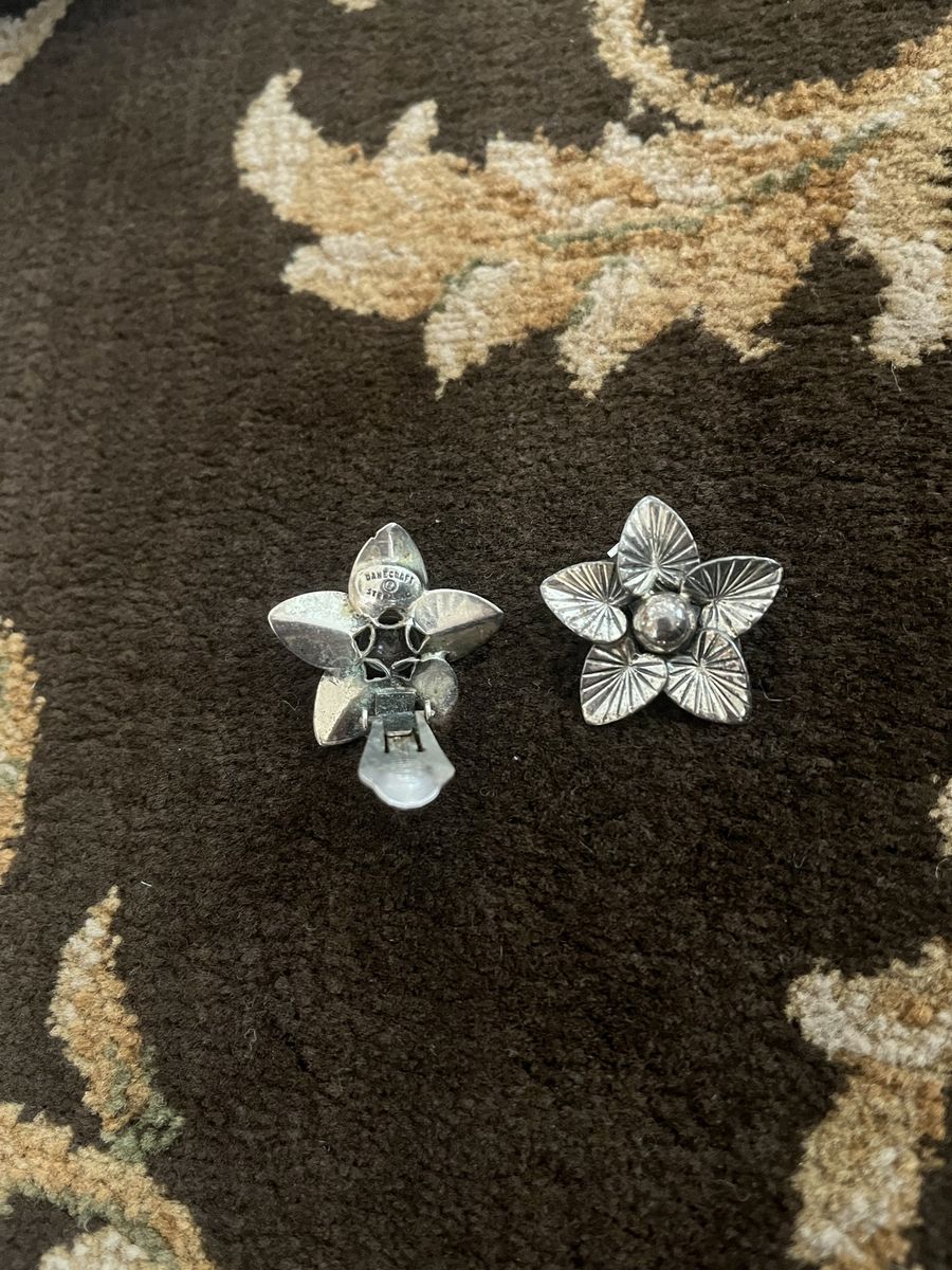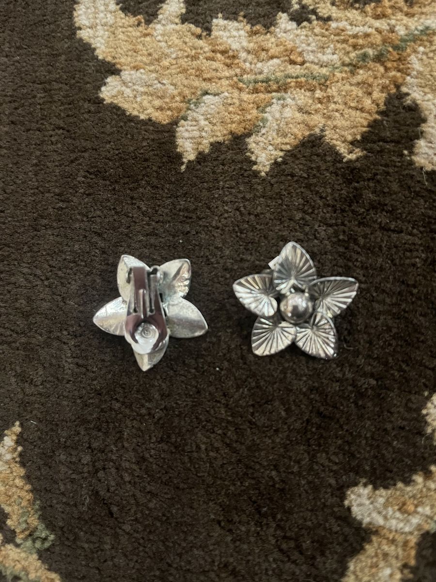 VenmoThese are stamped on the back Danecraft Sterling There is a R in a circle, which from what I read is a trademark of the 1940's . The earrings measure 1 inch across. The earrings are clip backs. These are in nice condition.
