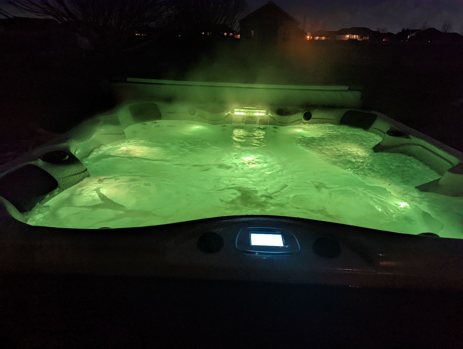VenmoWe have had this for a few years and have loved it...we are Definitely going to miss it. We upgraded the cover to a really nice custom heavy duty cover, It traps the heat in really well without any leaks, so it doesn't have to work so hard to heat. It lowered our electric bill. We are getting ready to add onto our house, so we thought it would be best to sell instead of trying to store it. The speakers just started not working too well for music. On the back side, I bumped it with my mower and made a small hole. As you can see in the last picture, I put vinyl tape over it. I have a whole roll incase it starts to peel off. Everything functions well.