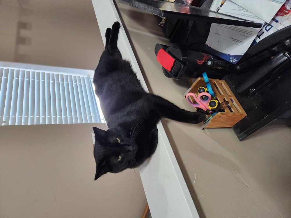 VenmoHello, My name is Geronimo and I am a 4 year old black cat with a short hooked tail. I can be a little sensitive about it but I was born this way. My owner is leaving me to join the Army and now I need to find a new person to meow at, act like I want attention and then psych, run away. I'm more of an adult 1 person cat but who know with enough treats anything is possible. I also live w 2 teenagers and an annoying puppy so I'm ready some peace and quiet. Hope to annoy you soon. I am a complete package deal too. food, cat tree, dishes, toys that I play w once and then ignore etc.
