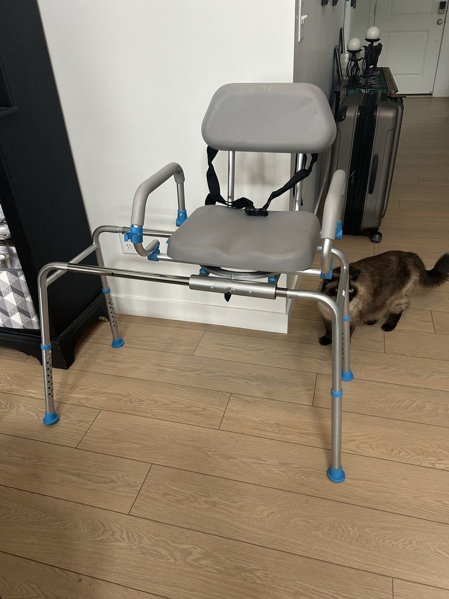 VenmoLoyodaSliding Shower Chair Tub Transfer Bench for Bathtub with Swivel Seat, Padded Shower Bench with Pivoting Arms, Height Adjustable Shower Seat, 350 lbs, Gray, Standard new inbox