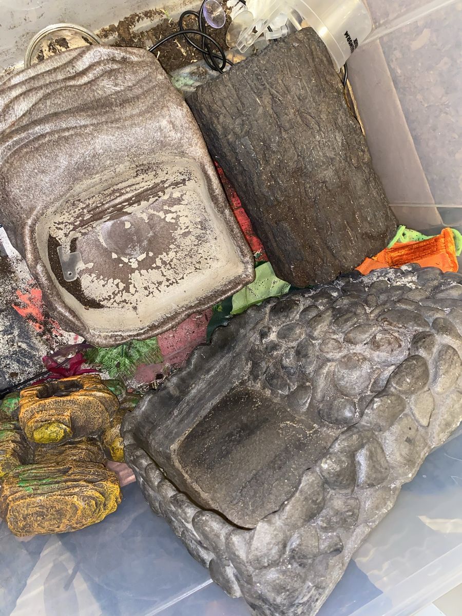 ApplePaySmall Lamps -$15 Spider Enclosure- $5 Misting system - $35 Large 40 gallon foam background - $20 Tall foam background - $10 Water bowls - $10 for both Xs hide -$10 Medium hide - $15 Holding carriers -$5 for both