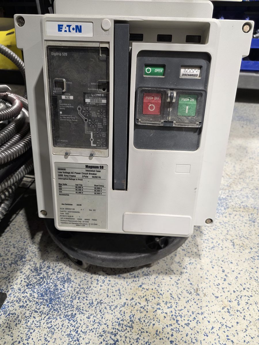 GooglePayFor sale is a used 3000a breaker that we recently pulled out for a generator upgrade. Breaker has only been trip tested and commisioned and never had a fault (trip) We only shut down to remove and do the transfer. Operates as UL listed and verified working. The Eaton Magnum SB630 (SBS-3000) low-voltage insulated-case circuit breaker, part of the Magnum SB family for UL 891 switchboards. For a 3000A drawout unit. This breaker is designed for high-capacity power distribution. Price is without shipping, but can provide shipping cost. Approx 475.00