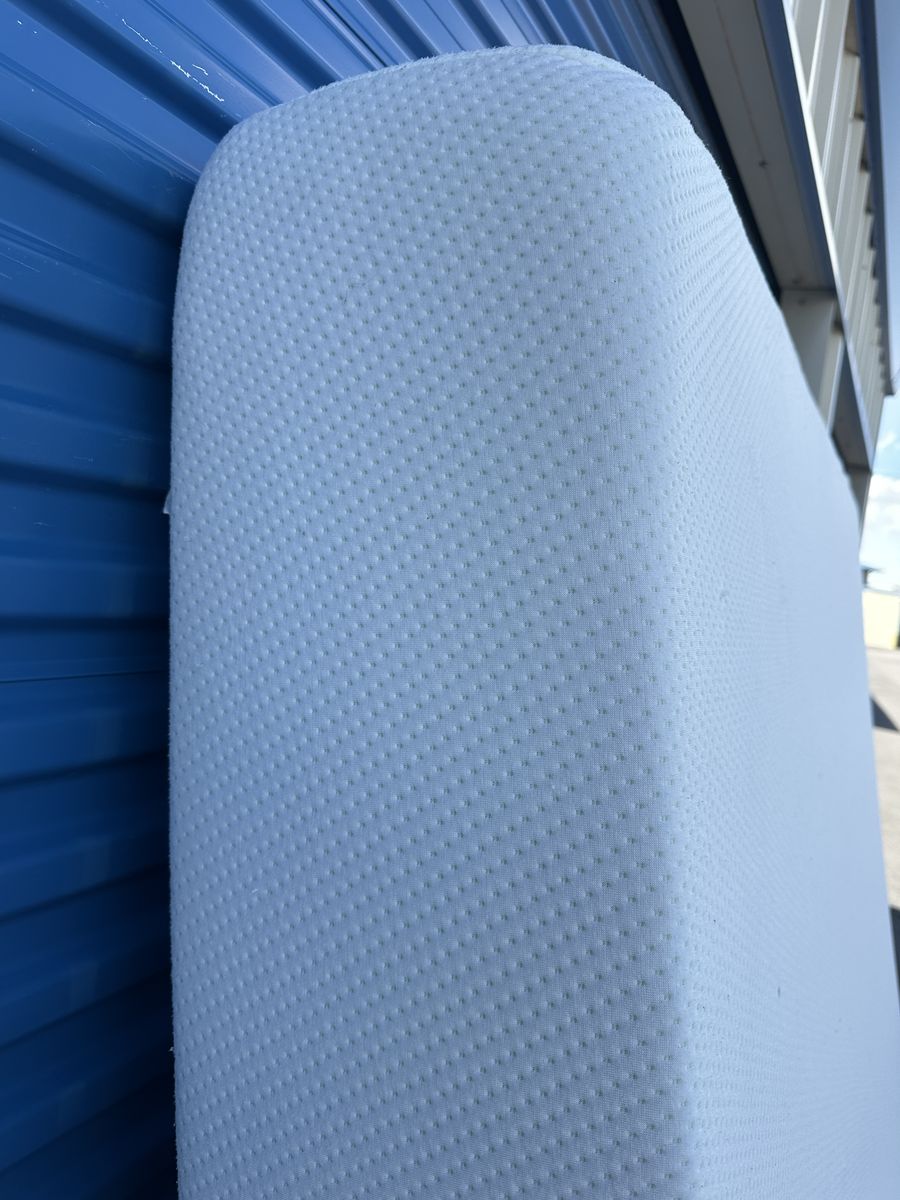 Check out this 12" Zinus Green Tree memory foam king mattress. Overall, it is in good condition. There are some noticeable signs of imperfections, a small mark on the front, some signs of use, etc.
