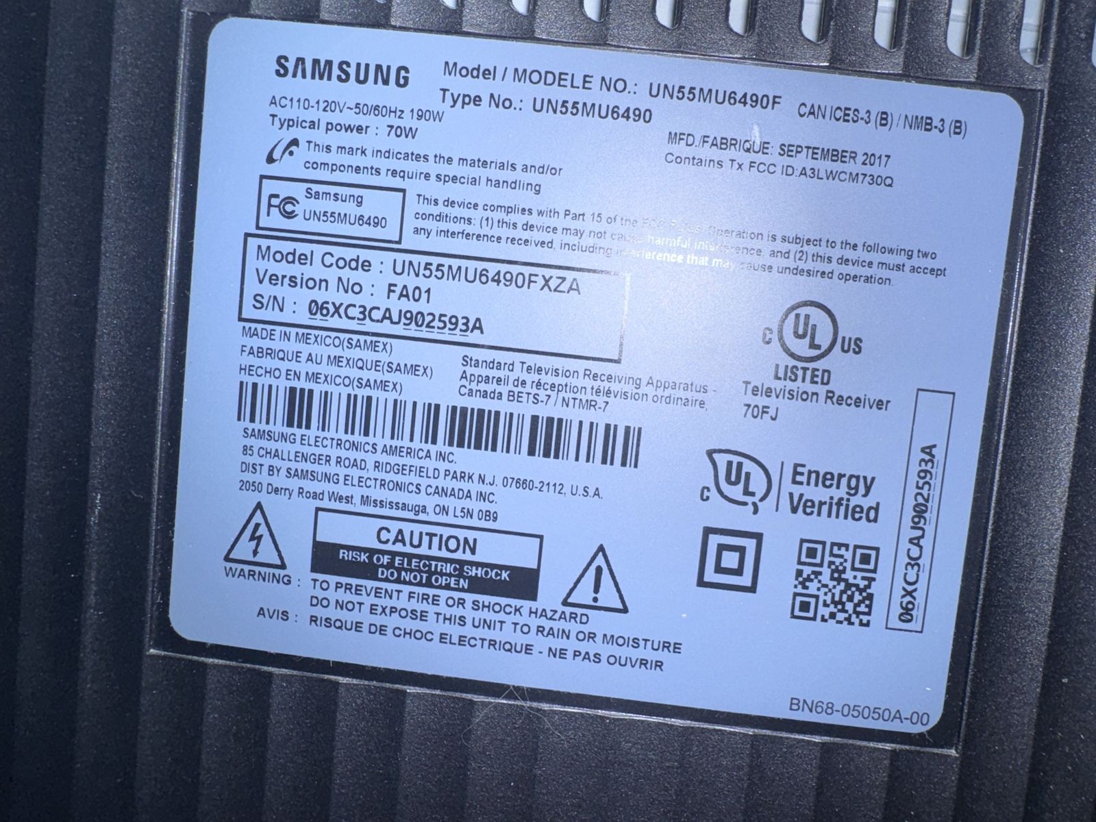 Description: Selling a Samsung 55” UHD 4K Smart TV (Model: UN55MU6490F). TV is in good working condition with a clean screen and great picture quality.