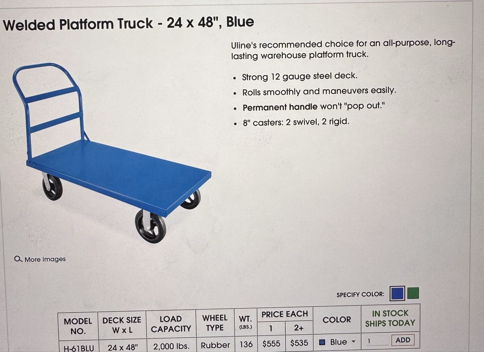 Qty - 4 - $100 each Welded Platform Cart - 24x48