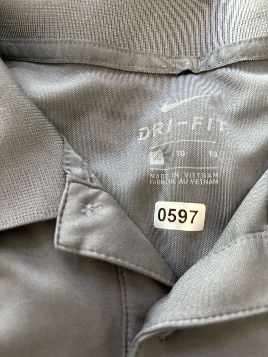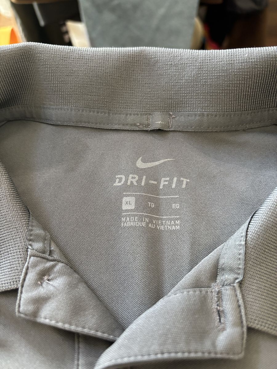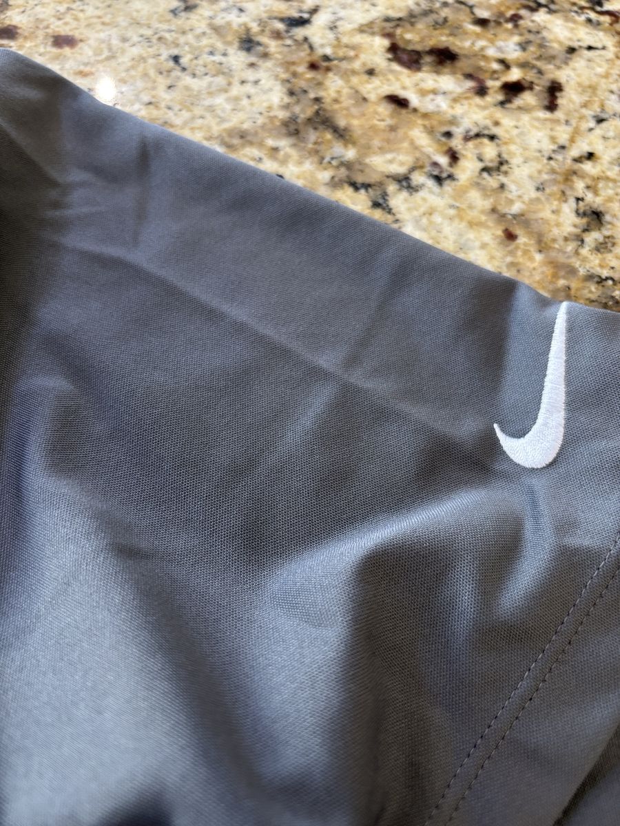 PayPalNike performance polo in solid gray. Short sleeves with a two-button placket. Breathable, lightweight fabric for active wear. Clean, minimal design for versatile use.
