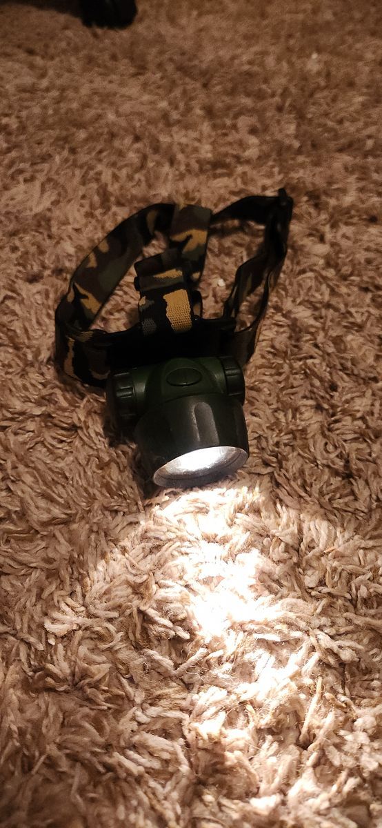 VenmoCamouflage head flashlight. Adjustable head straps. Light works. Haven't used for a long time. Great for camping, or any work to free your hands. FCFS X-POSTING Smoke-free home