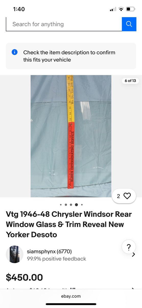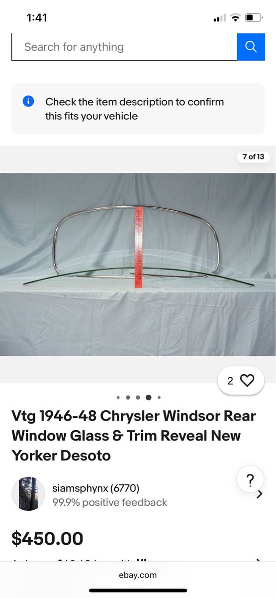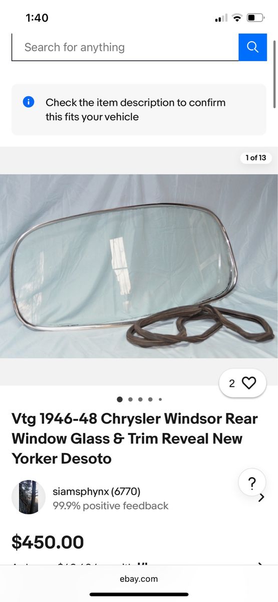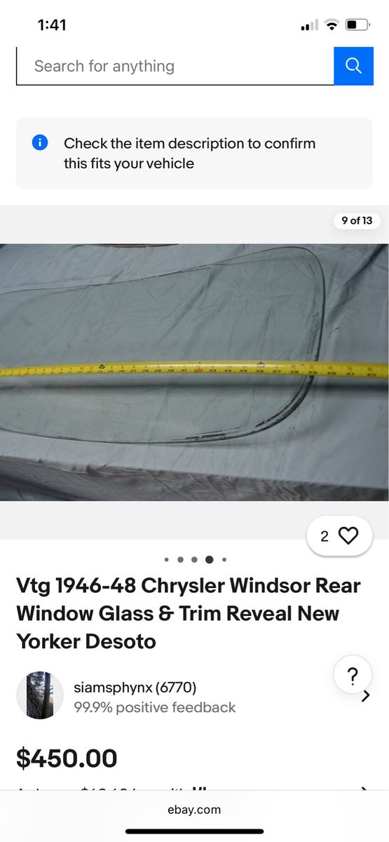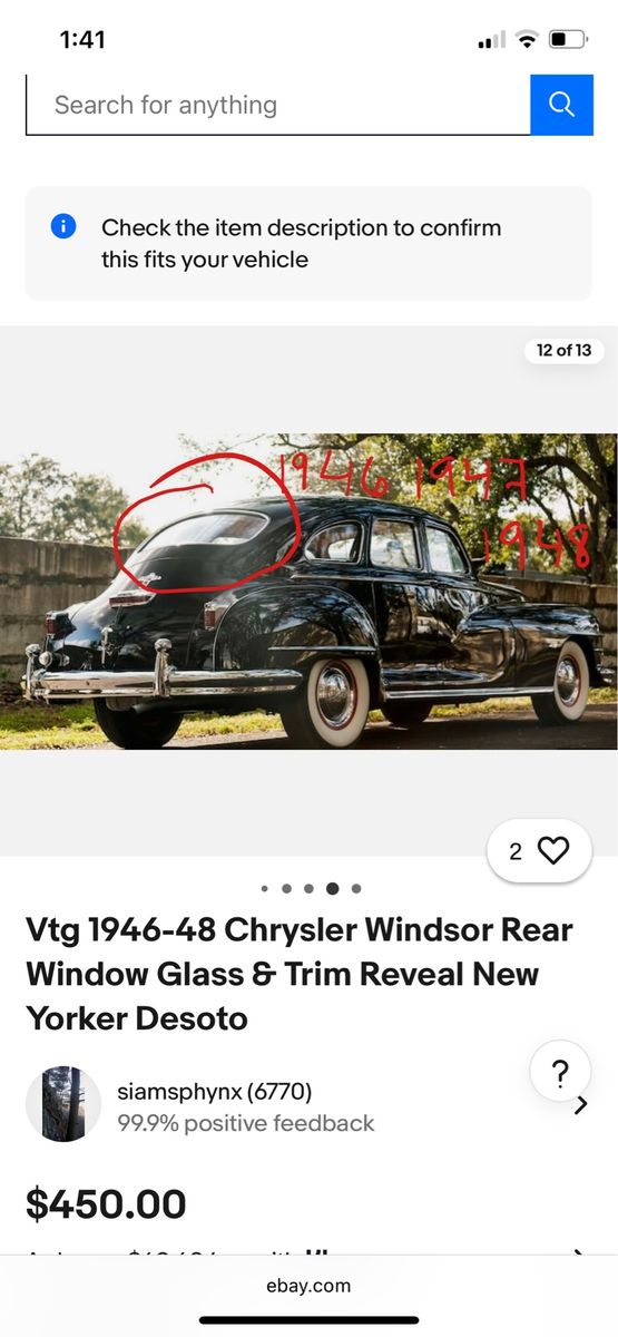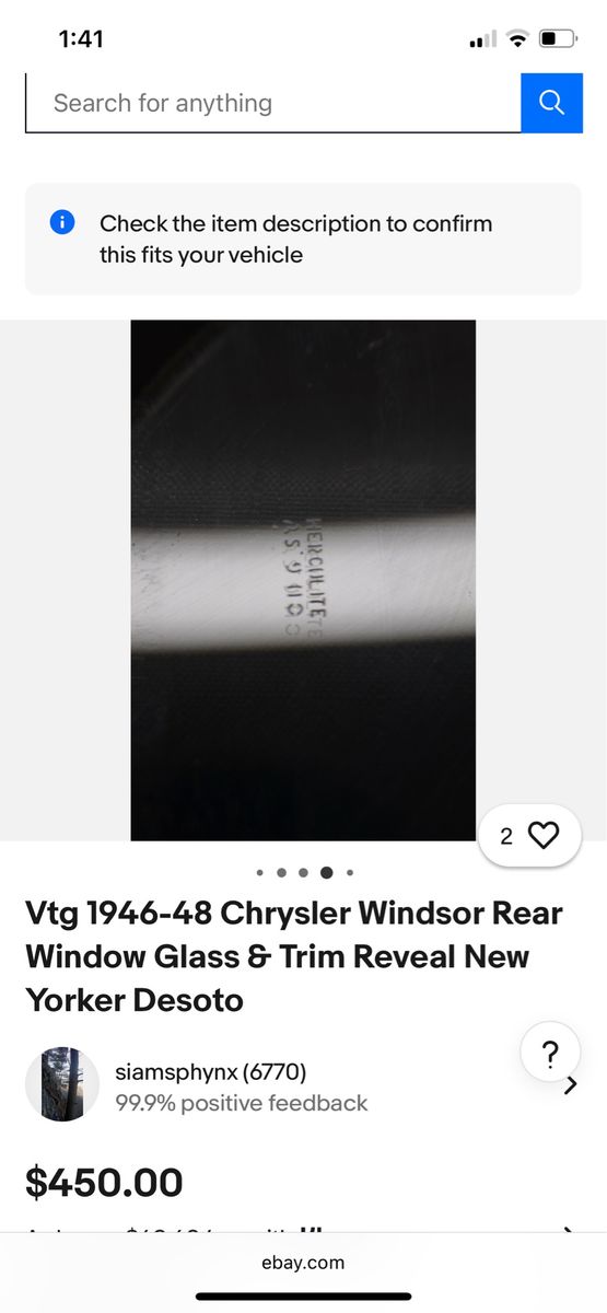 I have this rear window glass that I’ve been researching to find out what it came out of. It is in good condition. According to the Internet, it may have come out of a 46, 47 or 48 Chrysler Windsor or DeSoto. Markings and measurements match up. Free to a good home. The Glass is in the first photo, the other photos are from the Internet.
