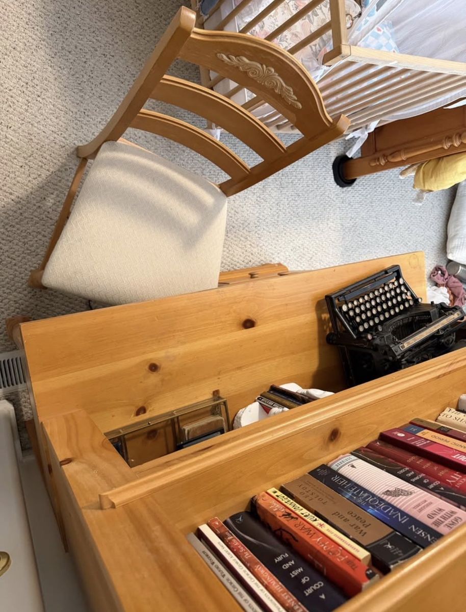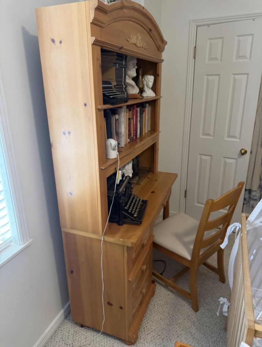 Four working drawers Attached writing light underneath Chair included Must be able to haul out yourself