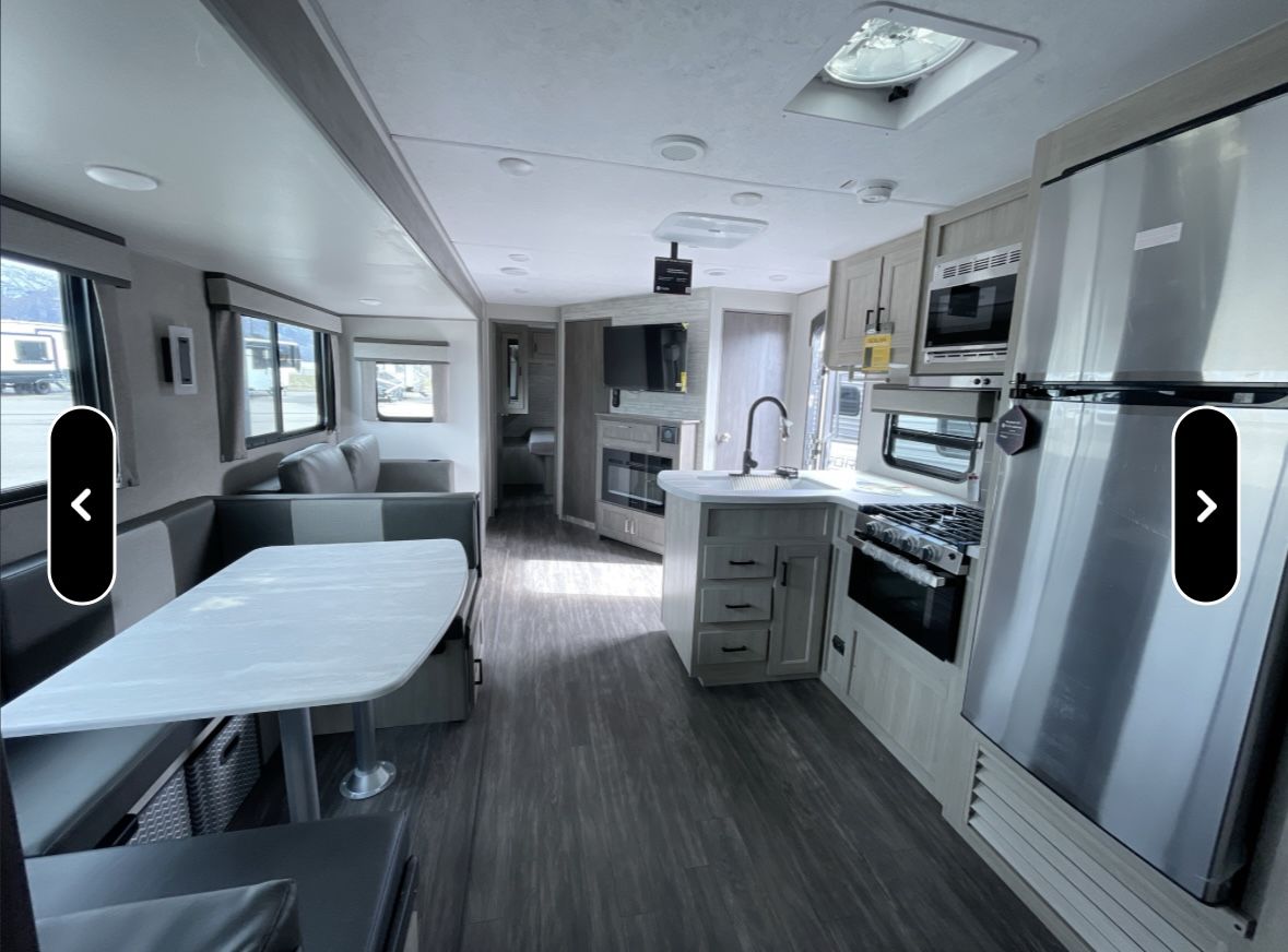 Venmo3 queen beds (separate master bedroom and separate bunk room) and additional sleeping space by converting the U-shaped dining table makes this trailer the perfect family trailer! 36 feet in length, a beautiful bathroom, U-shaped dining table, reclining couch, queen-sized bunk beds for the kids -- our trailer is fully loaded and ready for the next family to enjoy! A very large slide-out makes this trailer very roomy, and 2 AC units along with a furnace and fire place make it extremely comfortable in the heat of summer or cold of winter. Very well cared for, basically brand-new. We are sad to see it go but are moving and can't take it with us.