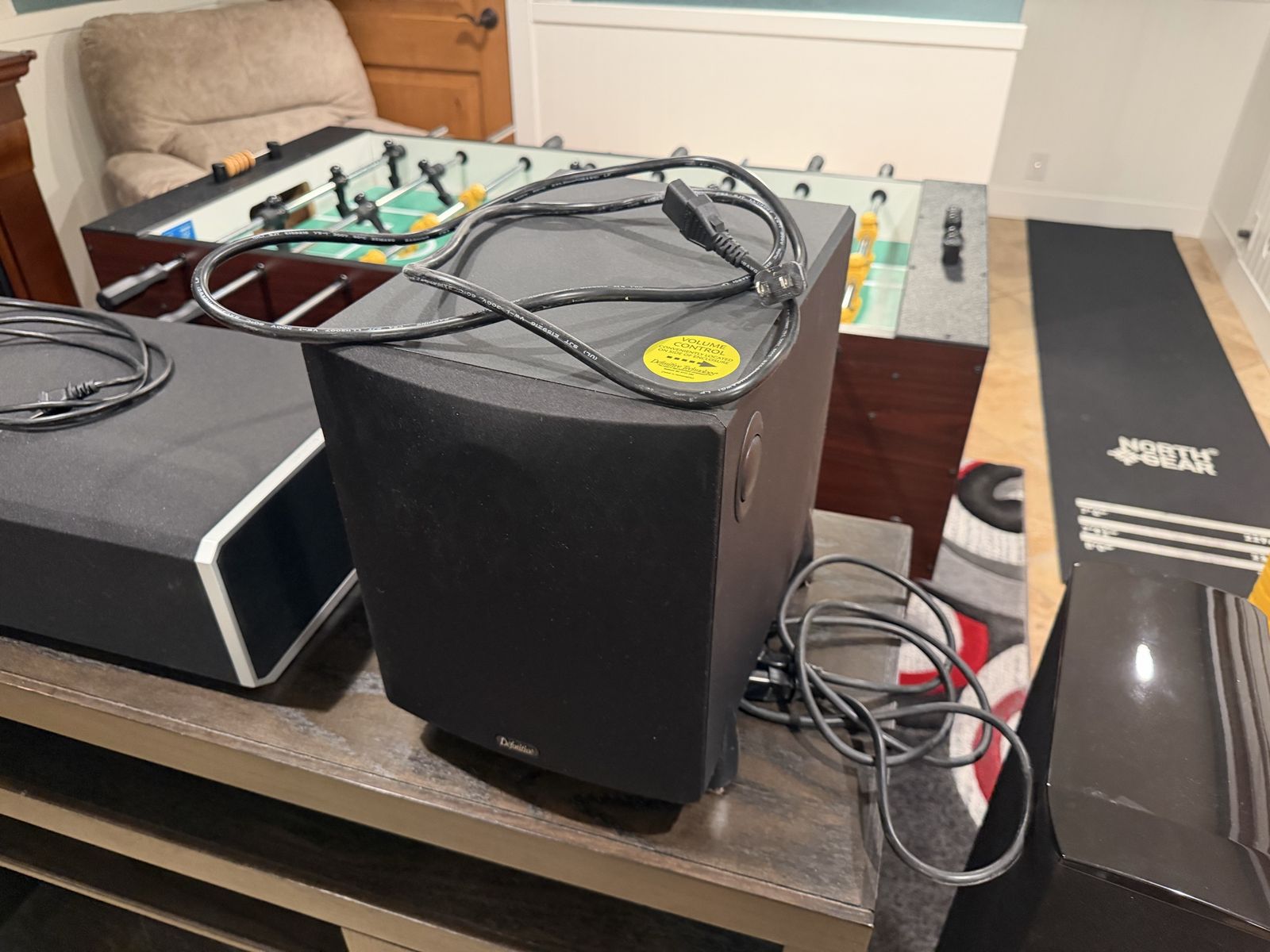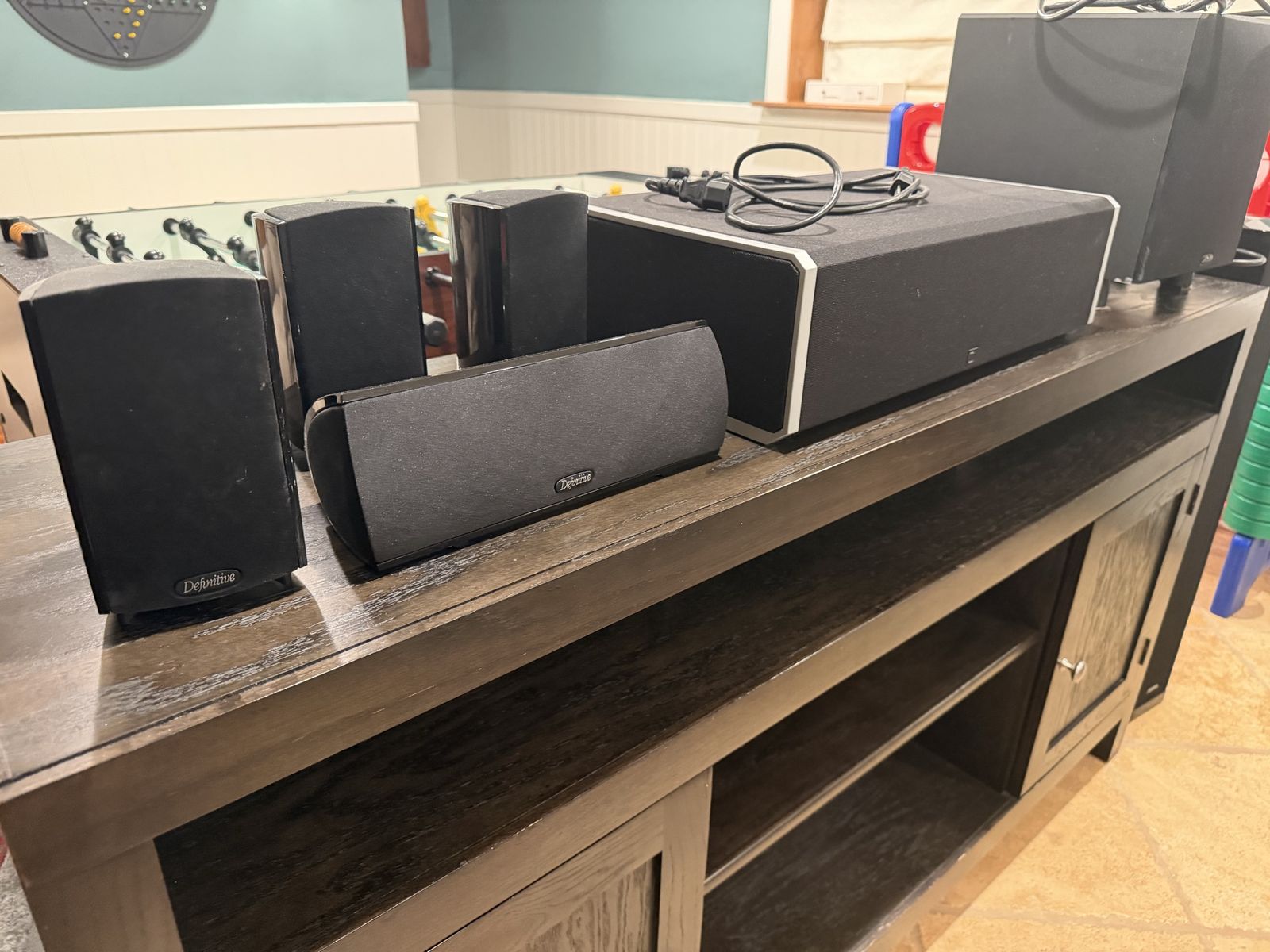 VenmoPioneer audio-video receiver with a sleek black design, clear front display, and multiple input options delivering powerful, high-quality sound. Includes a CS‑960 center channel speaker, Definitive Technology BP‑8020ST speaker towers, four additional surround sound speakers, and a subwoofer. Complete home theater system ready to deliver an immersive surround sound experience for movies, music, and gaming.