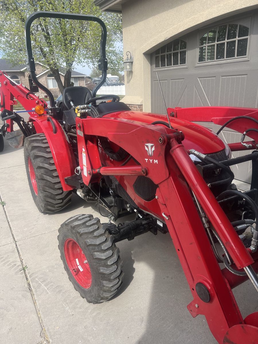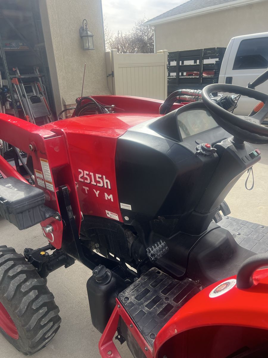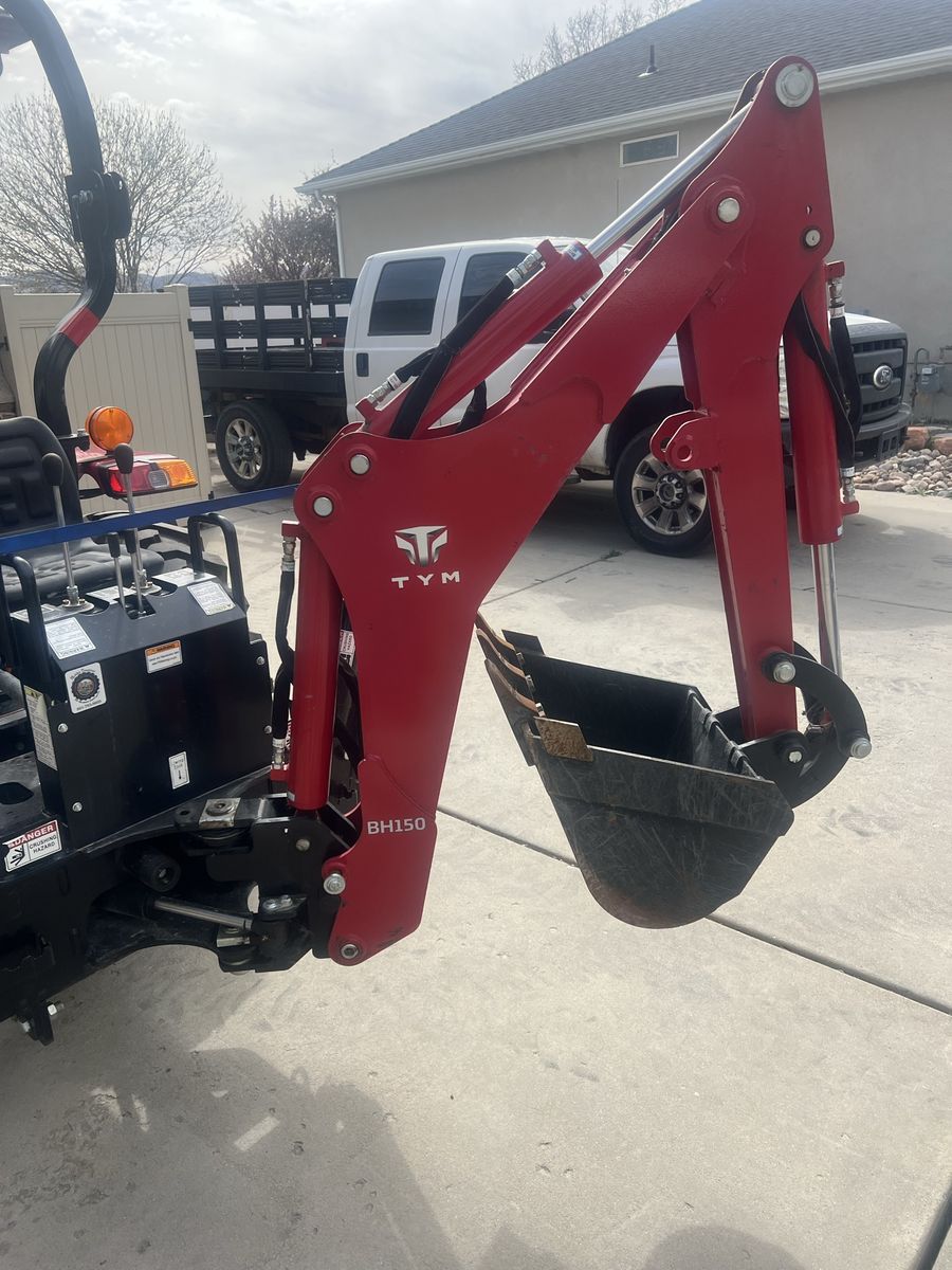 This is the TYM / Branson model 2515 tractor. It has a loader on the front and backhoe on the rear. Both are quick disconnect. 3 point assembly is included for use with many tractor implements. This tractor has a secondary set of hydraulics ran to the front for use with a grapple controlled at the tractor seat. Under 80 hours. Tractor looks and runs like new. Priced thousands less than new. Take a minute and look at TractorHouse.com for current prices. This is a smokin hot deal for a larger size tractor with backhoe. $23,750