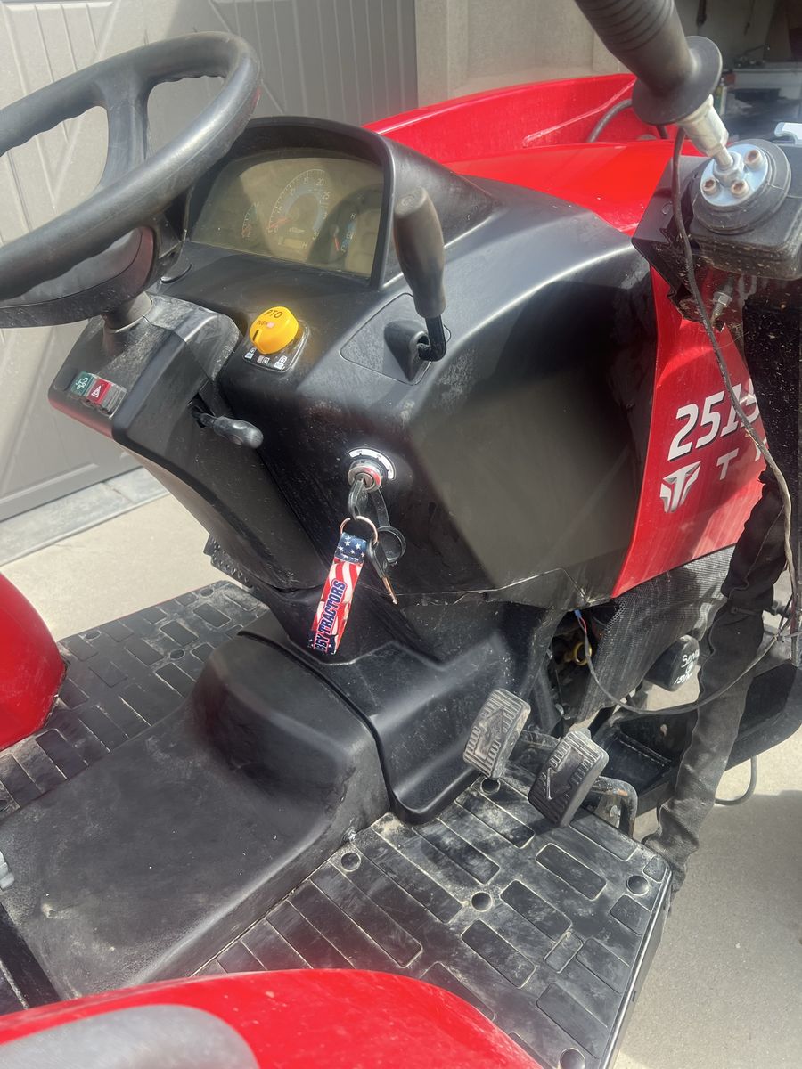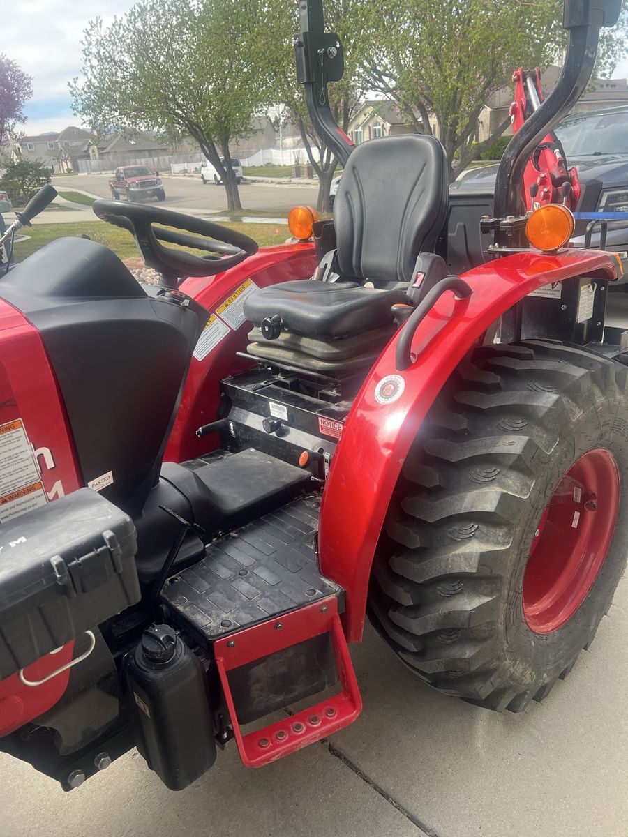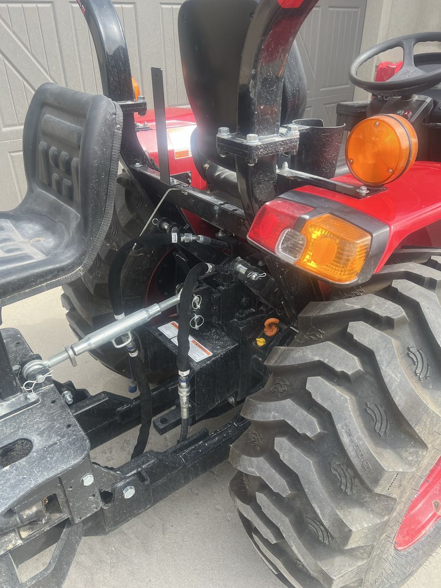 This is the TYM / Branson model 2515 tractor. It has a loader on the front and backhoe on the rear. Both are quick disconnect. 3 point assembly is included for use with many tractor implements. This tractor has a secondary set of hydraulics ran to the front for use with a grapple controlled at the tractor seat. Under 80 hours. Tractor looks and runs like new. Priced thousands less than new. Take a minute and look at TractorHouse.com for current prices. This is a smokin hot deal for a larger size tractor with backhoe. $23,750