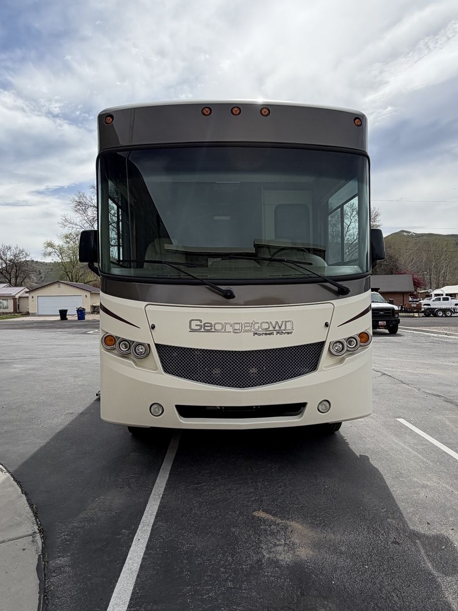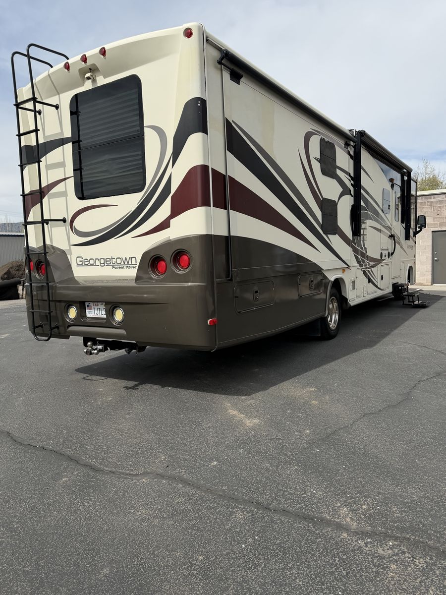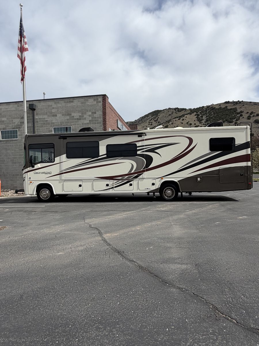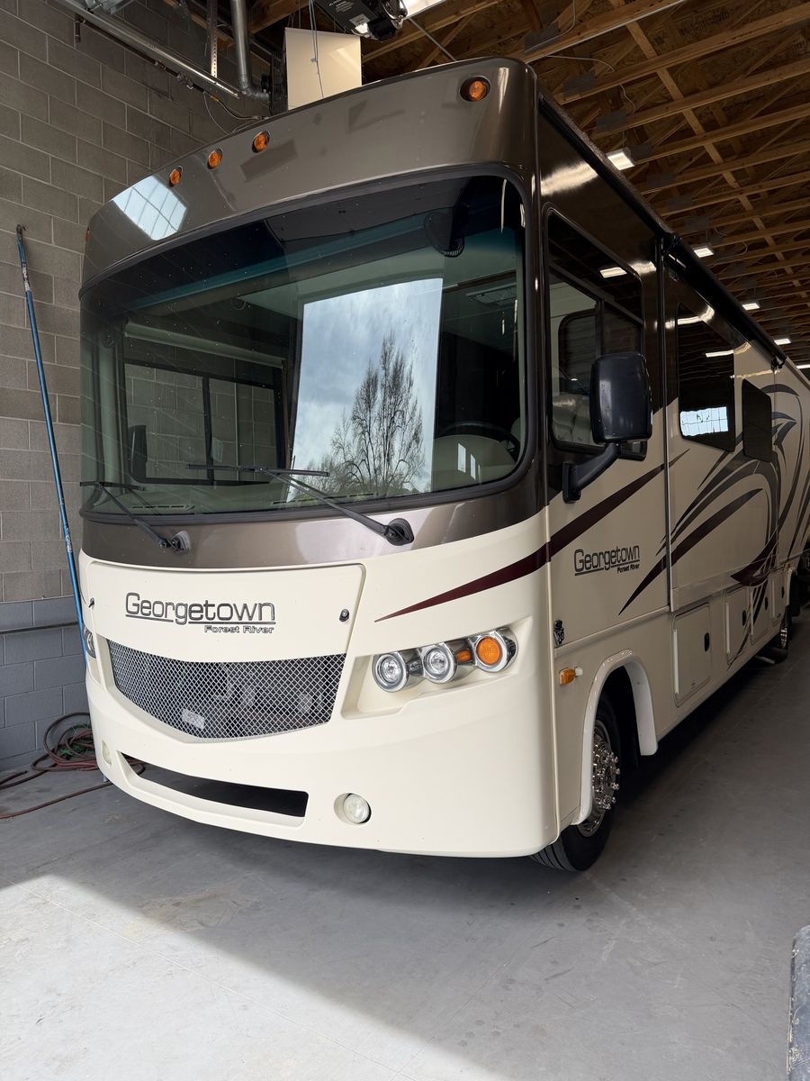 Clean motorhome, sleeps 8, stored inside. Upholstery all redone. Drives and rides good. V10 FORD engine. Back up cameras and side cameras. Generator works well. Tow hitch. Brake controller. Serviced regularly, Self leveling jacks. It’s been great for our family. Text is best to set an appointment.